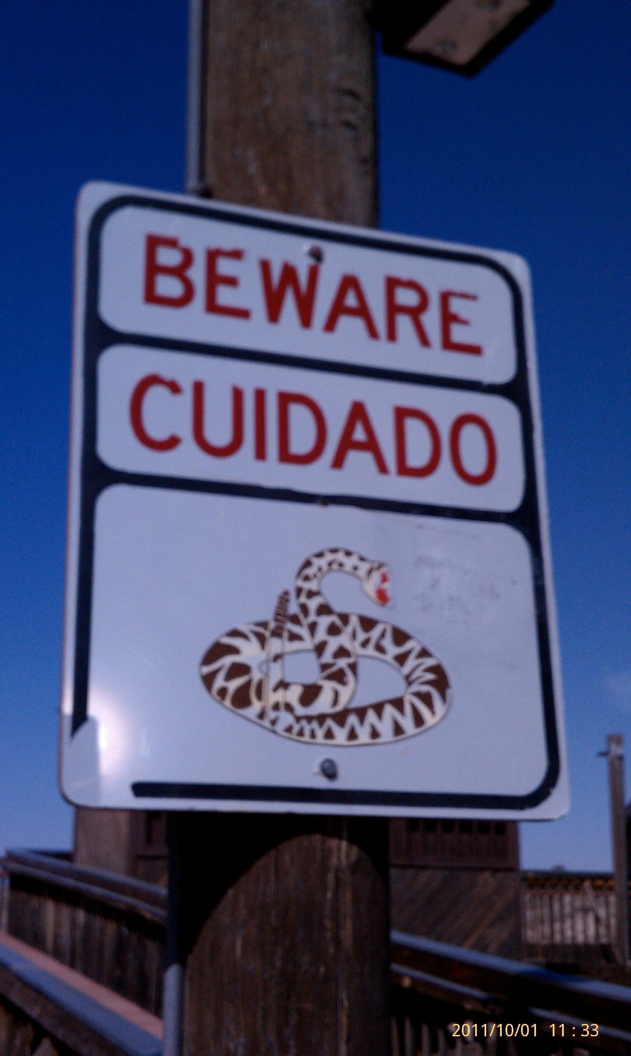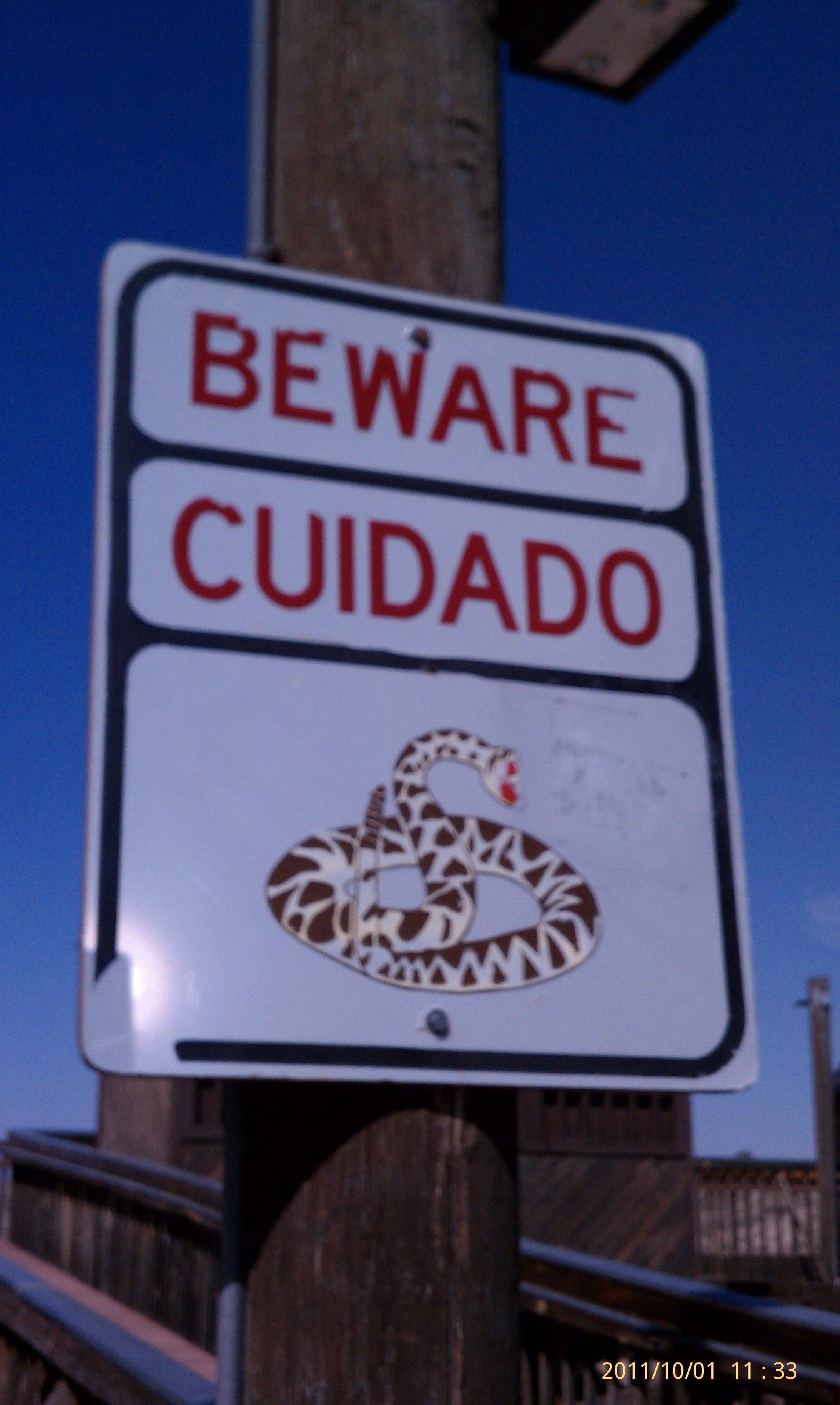 Watch out for that first step… Date: April 5, 2013Author: Museum Curator Category: Hazard Tags: hazard, rattlesnakes, signs, snakes, warning Post navigation ← Pause for a refreshment… Why don’t you come up and see me sometime? → 34.30559 -106.890495 Caution! Rattlesnakes. Maybe that’s why all these buildings are on stilts. Where is this? Don’t step here. Share this: Click to share on X (Opens in new window) X Click to share on Facebook (Opens in new window) Facebook Click to share on Pinterest (Opens in new window) Pinterest Click to share on Tumblr (Opens in new window) Tumblr Click to email a link to a friend (Opens in new window) Email Like Loading... Related
