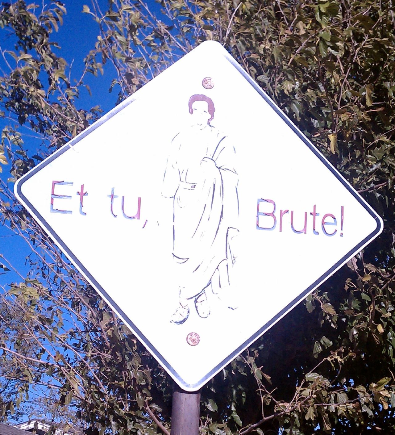 Beware the Ides of March… Date: April 8, 2013Author: Museum Curator Category: Art Tags: art, Dynamite Museum, signs Post navigation ← Grab a soda pop at the filling station… Stick it to the man, the mailman that is… → 35.2113 -101.87944 Dynamite Museum piece. Et tu Brute. Where is this? Art in traffic warning sign media. Share this: Share on X (Opens in new window) X Share on Facebook (Opens in new window) Facebook Share on Pinterest (Opens in new window) Pinterest Share on Tumblr (Opens in new window) Tumblr Email a link to a friend (Opens in new window) Email Like Loading... Related