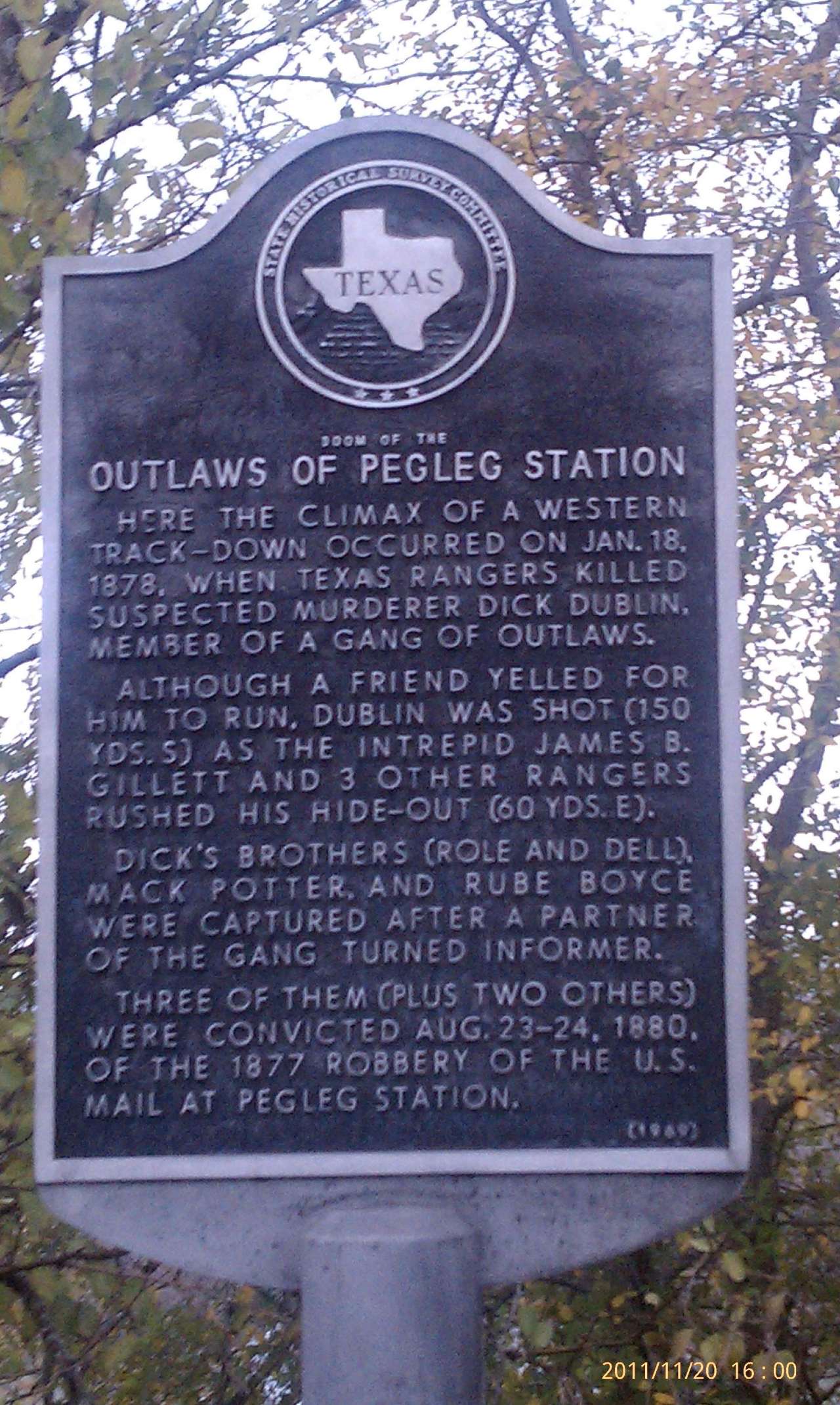 Texas Rangers get their man… Date: April 10, 2013Author: Museum Curator Category: Historic Tags: historic, historic marker, outlaws, Texas Rangers, US mail Post navigation ← Watch out when the tail wags… If these broken machines could talk… → 30.392508 -99.88816 Historic marker for Outlaws of Pegleg Station. Where is this? The Outlaws of Pegleg Station. Share this: Click to share on X (Opens in new window) X Click to share on Facebook (Opens in new window) Facebook Click to share on Pinterest (Opens in new window) Pinterest Click to share on Tumblr (Opens in new window) Tumblr Click to email a link to a friend (Opens in new window) Email Like Loading... Related