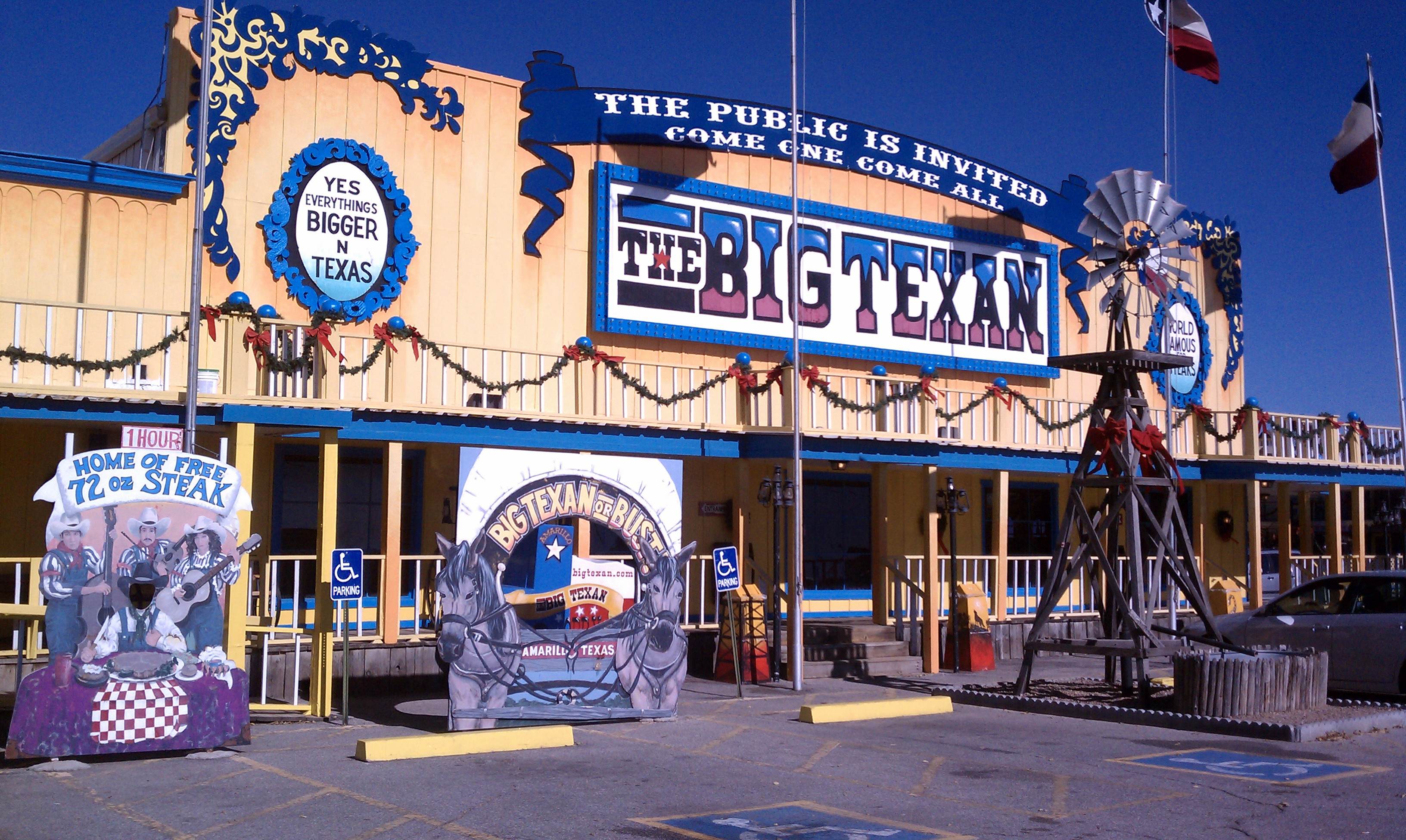 Try your luck eating that steak, podner… Date: April 11, 2013Author: Museum Curator Category: Food/Drink Tags: drink, food, roadside attraction, steak, steak challenge Post navigation ← Wishing I was a (red) rock star… The hazards of modern day transportation… → 35.193394 -101.75503 The Big Texan Steak Ranch. Home of the 72 oz steak challenge. Where is this? A roadside attraction worth the stop. Share this: Click to share on X (Opens in new window) X Click to share on Facebook (Opens in new window) Facebook Click to share on Pinterest (Opens in new window) Pinterest Click to share on Tumblr (Opens in new window) Tumblr Click to email a link to a friend (Opens in new window) Email Like Loading... Related
