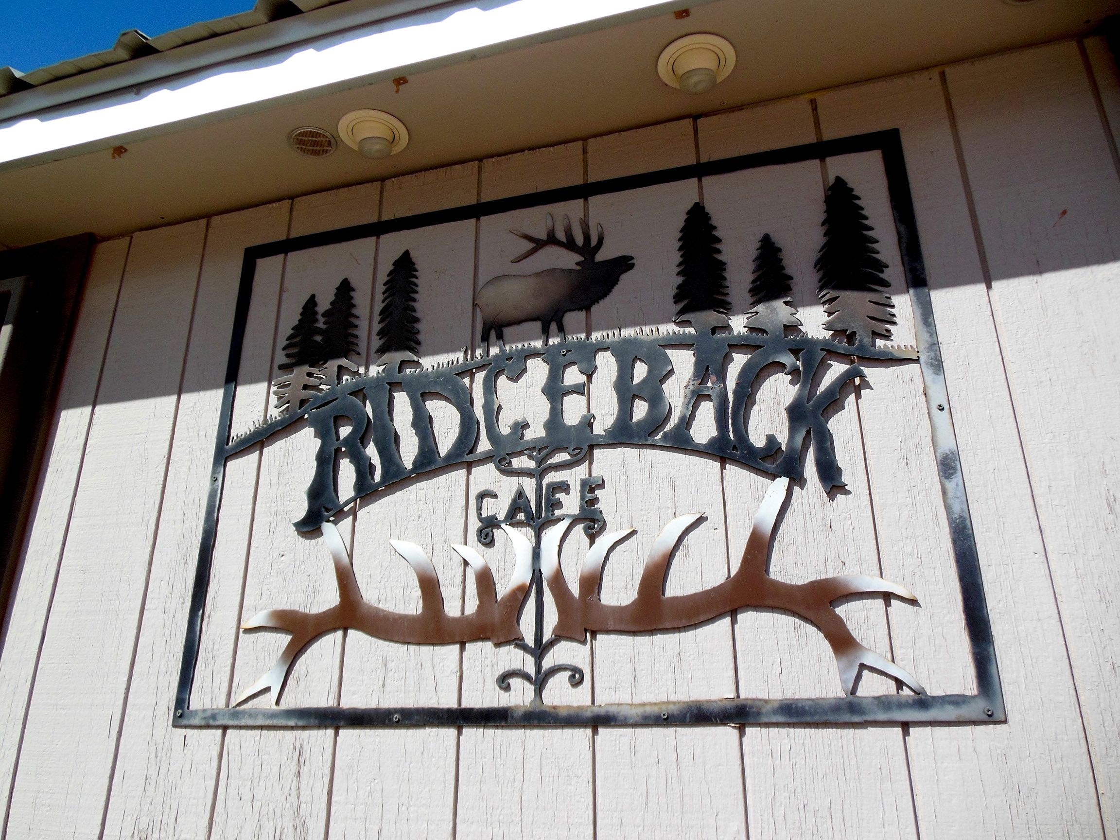 A metal sign for the ridgeback Cafe. Looks like a local customers work.