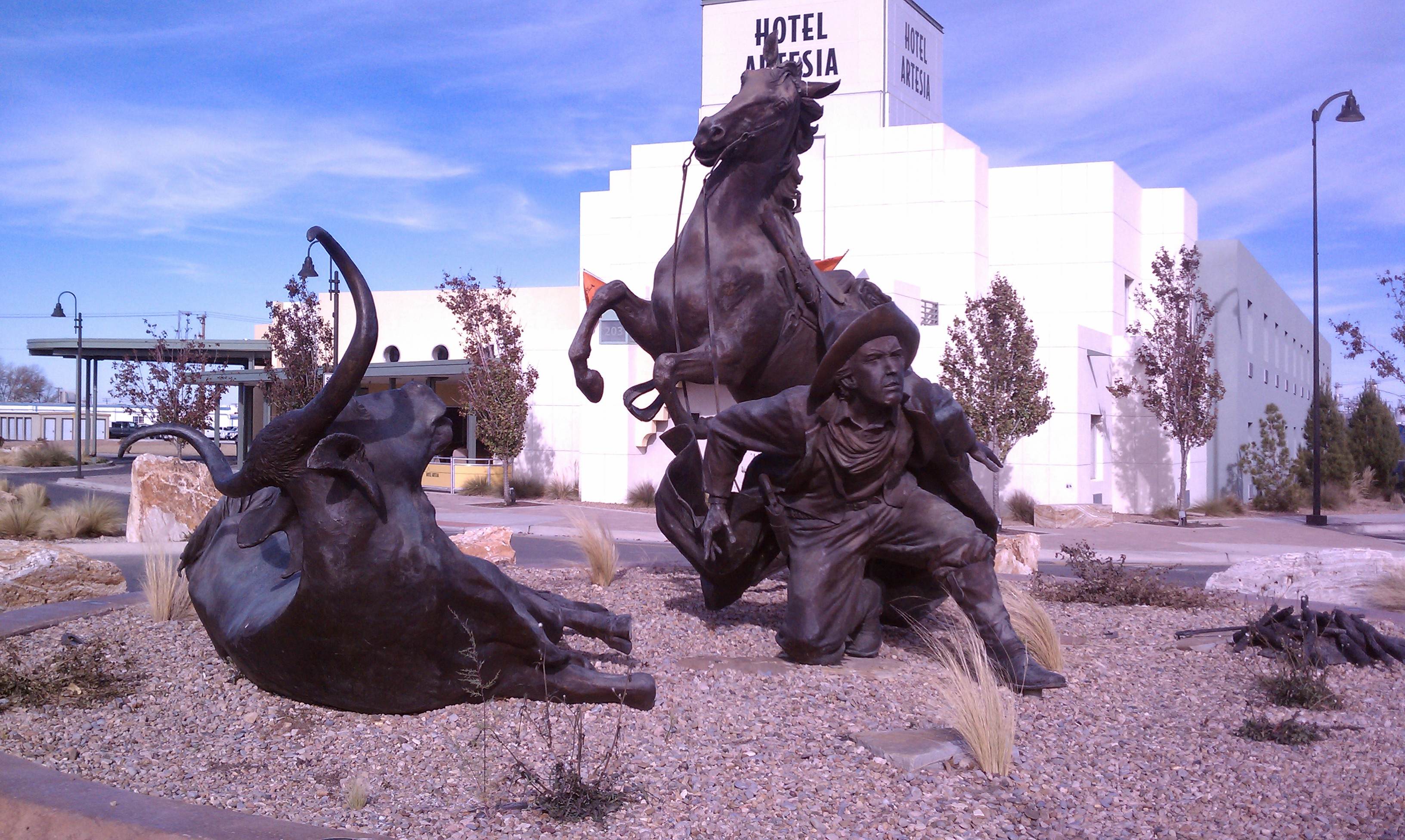 Excitement during the cattle drive… Date: May 3, 2013Author: Museum Curator Category: Art Tags: bronze sculpture, cattle drive, cowboy, sculpture, western scene Post navigation ← The Victorian era in repose… Each surface tells a different story… → 32.843353 -104.39876 Sculpture of cowboy. Part of the cattle drive series here in town. Where is this? Part of the Cattle Drive Series works. Share this: Click to share on X (Opens in new window) X Click to share on Facebook (Opens in new window) Facebook Click to share on Pinterest (Opens in new window) Pinterest Click to share on Tumblr (Opens in new window) Tumblr Click to email a link to a friend (Opens in new window) Email Like Loading... Related