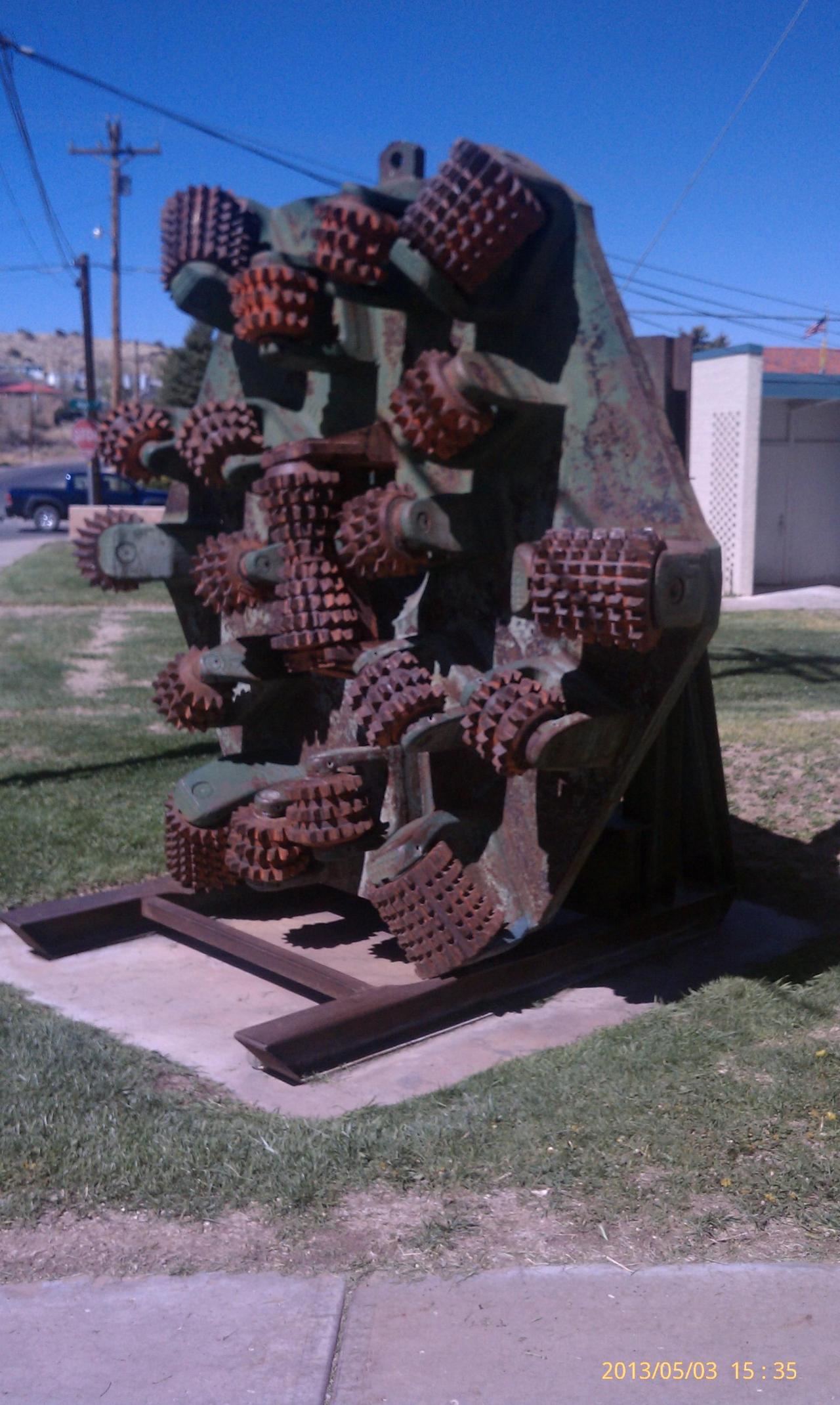 One big digging tool… Date: May 10, 2013Author: Museum Curator Category: Historic Tags: drill bit, mining, mining hardware, mining tool Post navigation ← You’ve died of dysentery… Along came a spider… → 35.15359 -107.85472 A ten foot diameter mining drill bit stands here. Where is this? Read the Backstory at the Library of the Qingxit A drill bit for digging mines. Share this: Click to share on X (Opens in new window) X Click to share on Facebook (Opens in new window) Facebook Click to share on Pinterest (Opens in new window) Pinterest Click to share on Tumblr (Opens in new window) Tumblr Click to email a link to a friend (Opens in new window) Email Like Loading... Related
