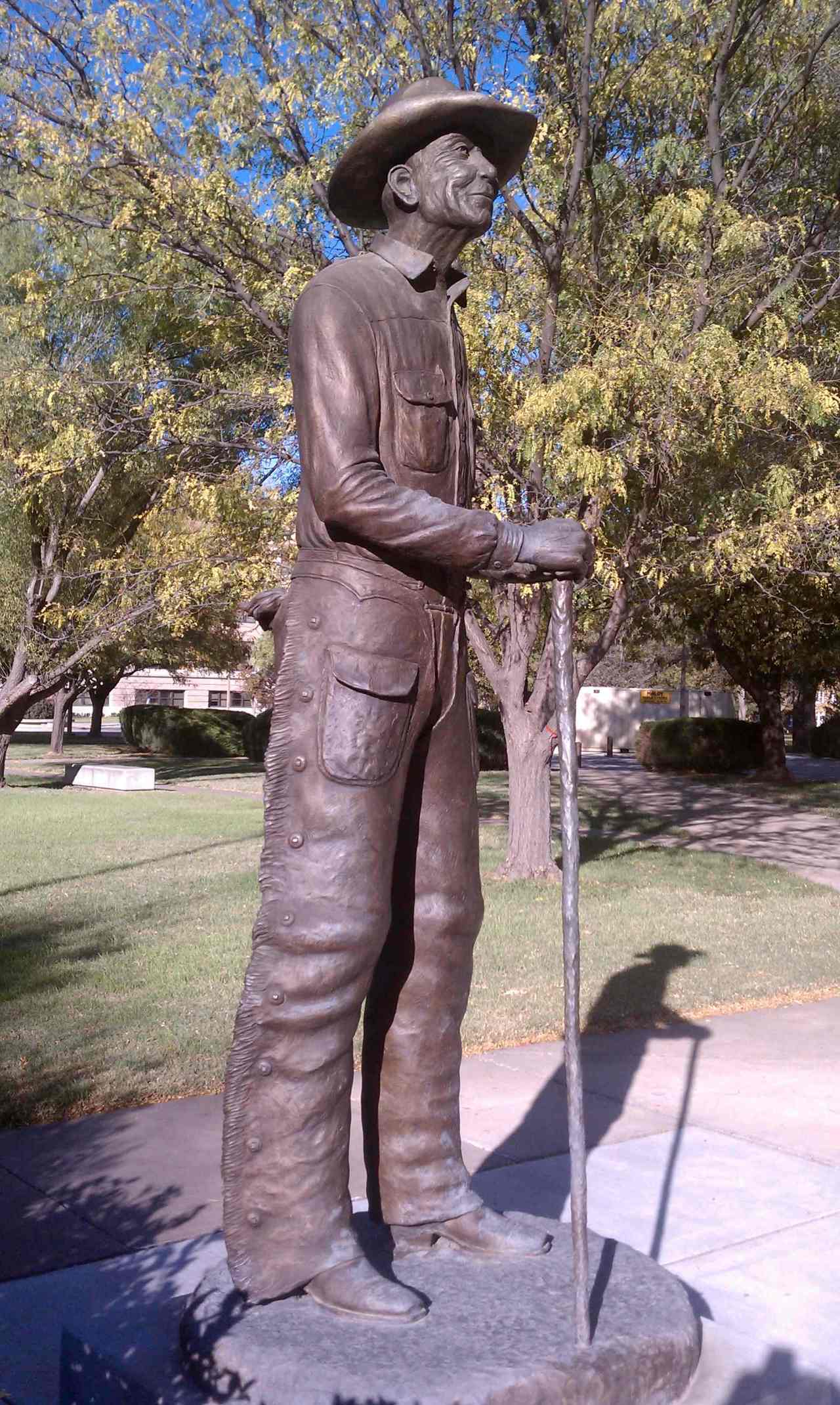 A tall Texas profile… Date: May 13, 2013Author: Museum Curator Category: Art Tags: bronze sculpture, cowboy, pioneer life, sculpture Post navigation ← Stories of the old west… What went through here? → 34.980255 -101.91641 Statue of cowboy. Where is this? Bronze cowboy stands tall. Share this: Click to share on X (Opens in new window) X Click to share on Facebook (Opens in new window) Facebook Click to share on Pinterest (Opens in new window) Pinterest Click to share on Tumblr (Opens in new window) Tumblr Click to email a link to a friend (Opens in new window) Email Like Loading... Related