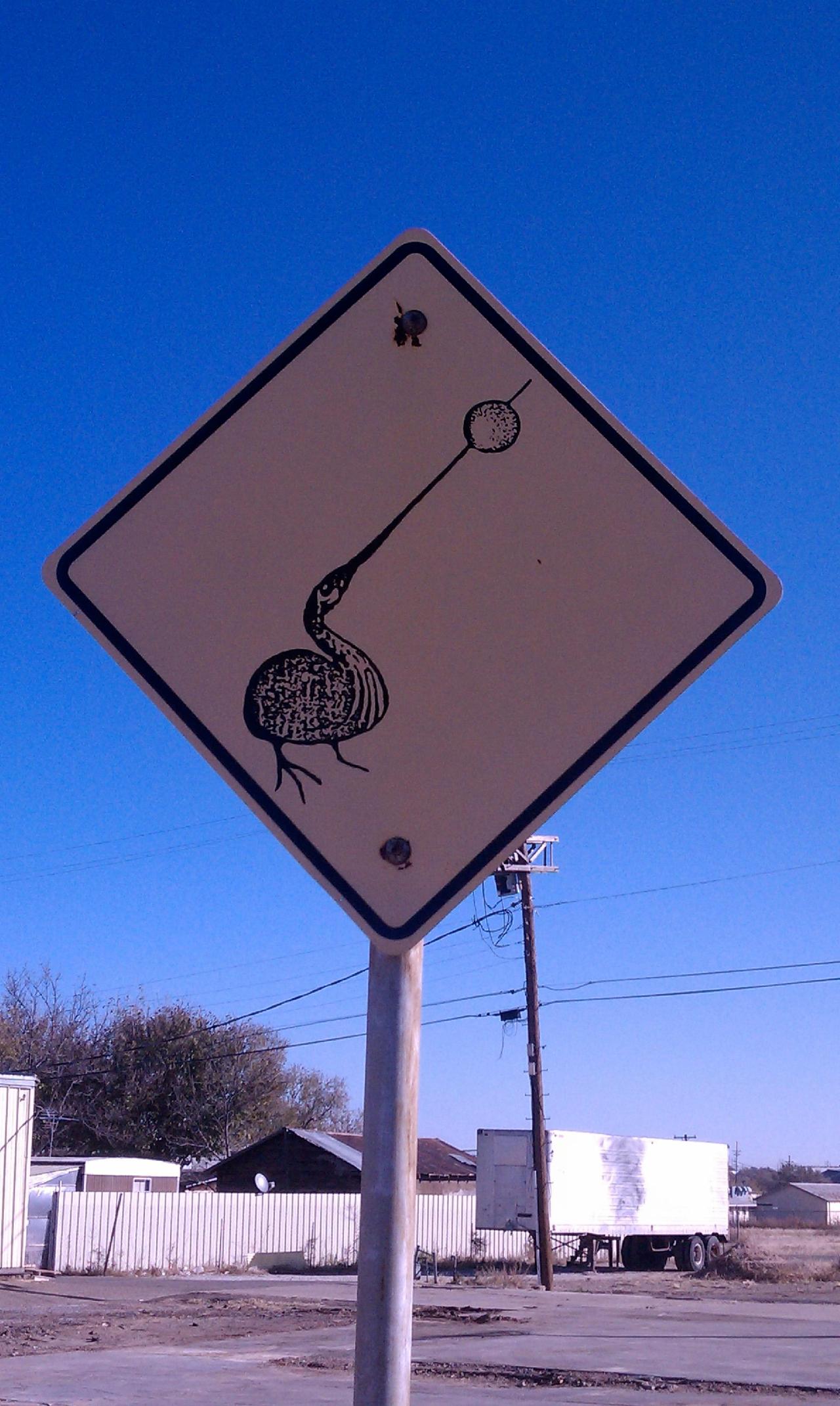 Caution, bird hazard ahead… Date: May 17, 2013Author: Museum Curator Category: Art Tags: bird, bird hazard, Dynamite Museum, hazard ahead, signs Post navigation ← Fly me to the moon… A modern day trading post… → 35.210484 -101.85683 Dynamite Museum piece. A bird? Where is this? Dynamite Museum piece of an interesting bird. Share this: Click to share on X (Opens in new window) X Click to share on Facebook (Opens in new window) Facebook Click to share on Pinterest (Opens in new window) Pinterest Click to share on Tumblr (Opens in new window) Tumblr Click to email a link to a friend (Opens in new window) Email Like Loading... Related