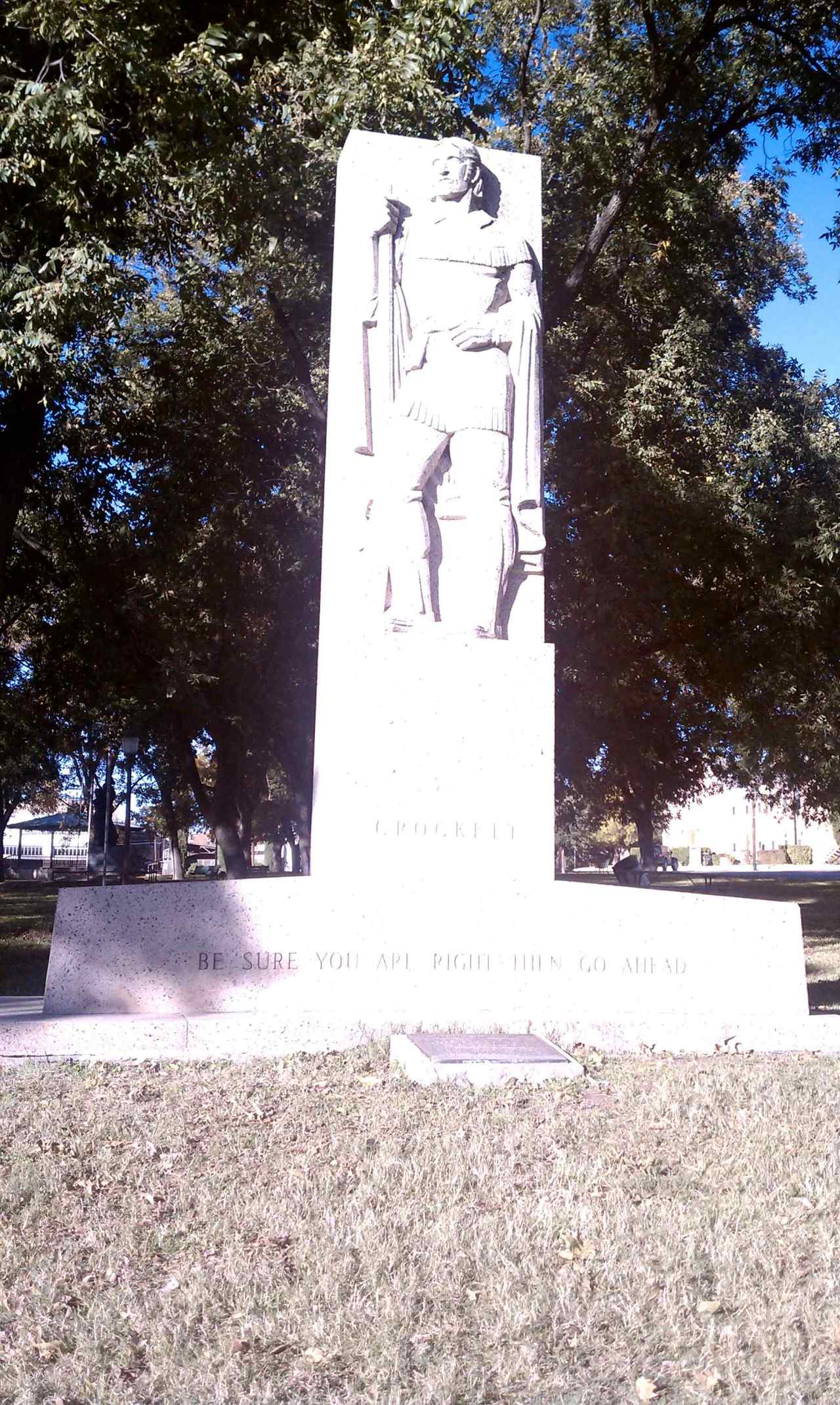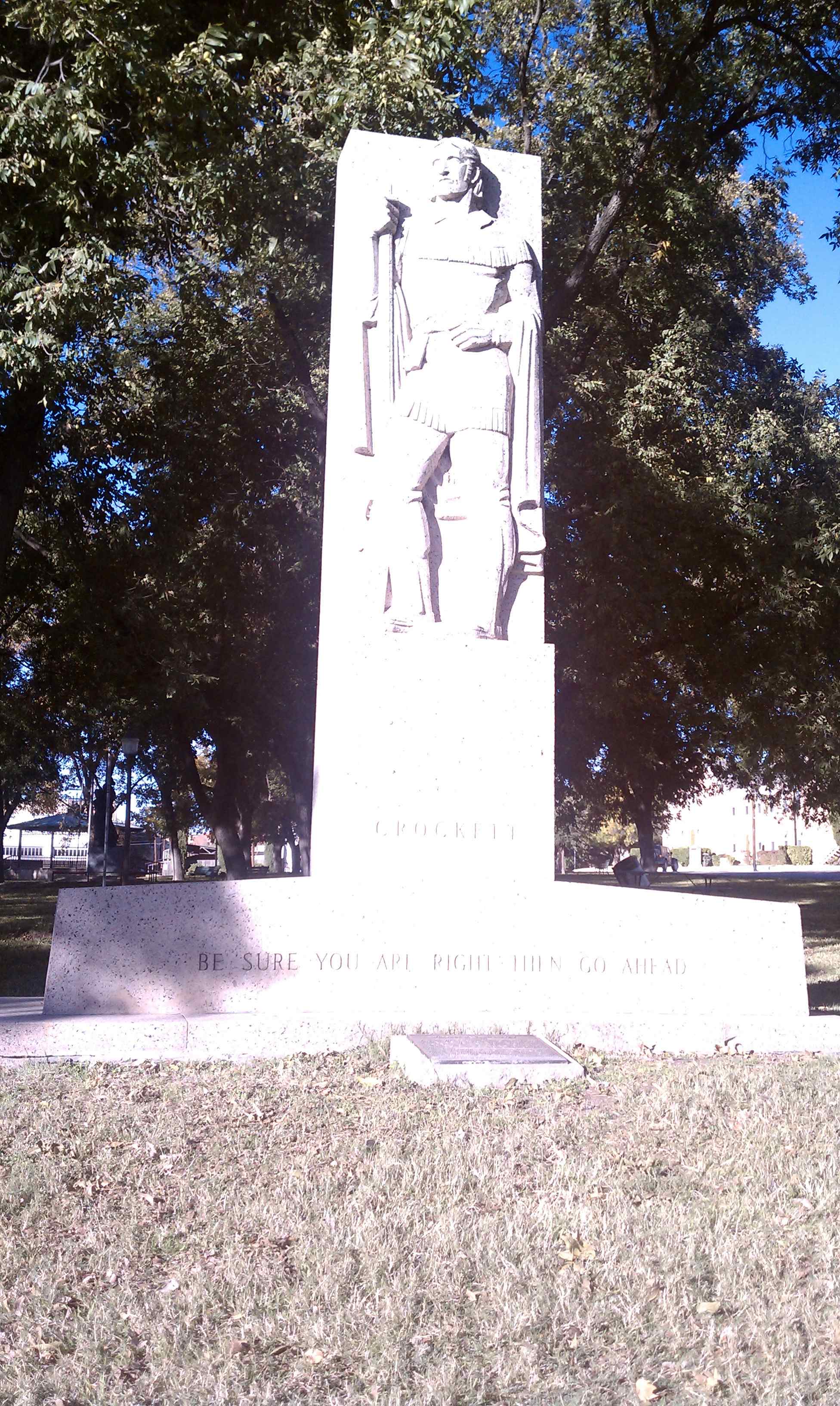 “Be sure you are right then go ahead” Date: May 28, 2013Author: Museum Curator Category: Historic Tags: art, Crockett County, Davy Crockett, monument, sculpture, Texas Post navigation ← Now that’s a movie marquee… Seeing the passengers off… → 30.710638 -101.201164 Monument to Davy Crockett. Where is this? A statue in the park. Share this: Click to share on X (Opens in new window) X Click to share on Facebook (Opens in new window) Facebook Click to share on Pinterest (Opens in new window) Pinterest Click to share on Tumblr (Opens in new window) Tumblr Click to email a link to a friend (Opens in new window) Email Like Loading... Related
