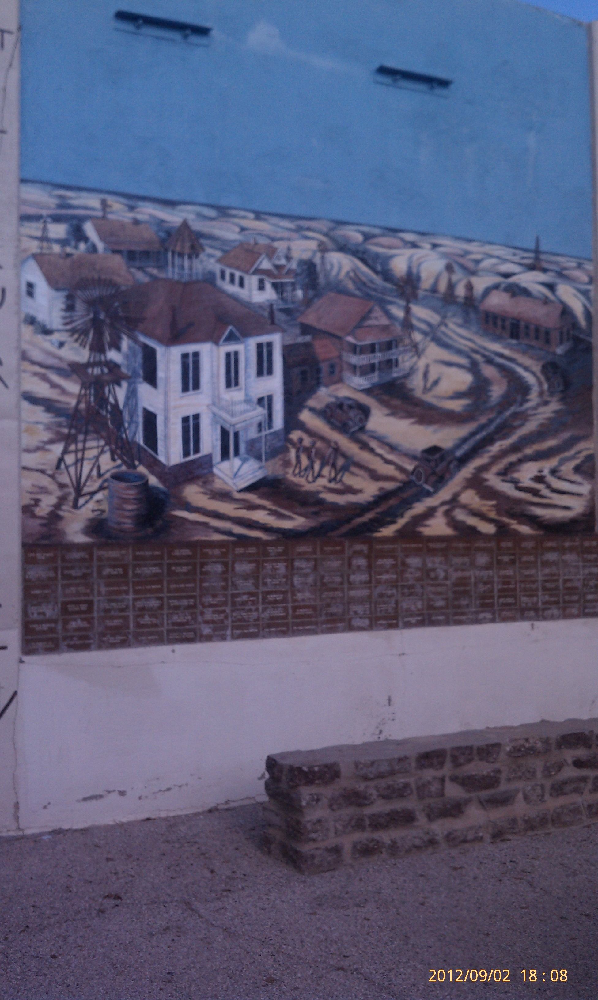 Very cool murals on side of building depict history of area and town of Kermit.
