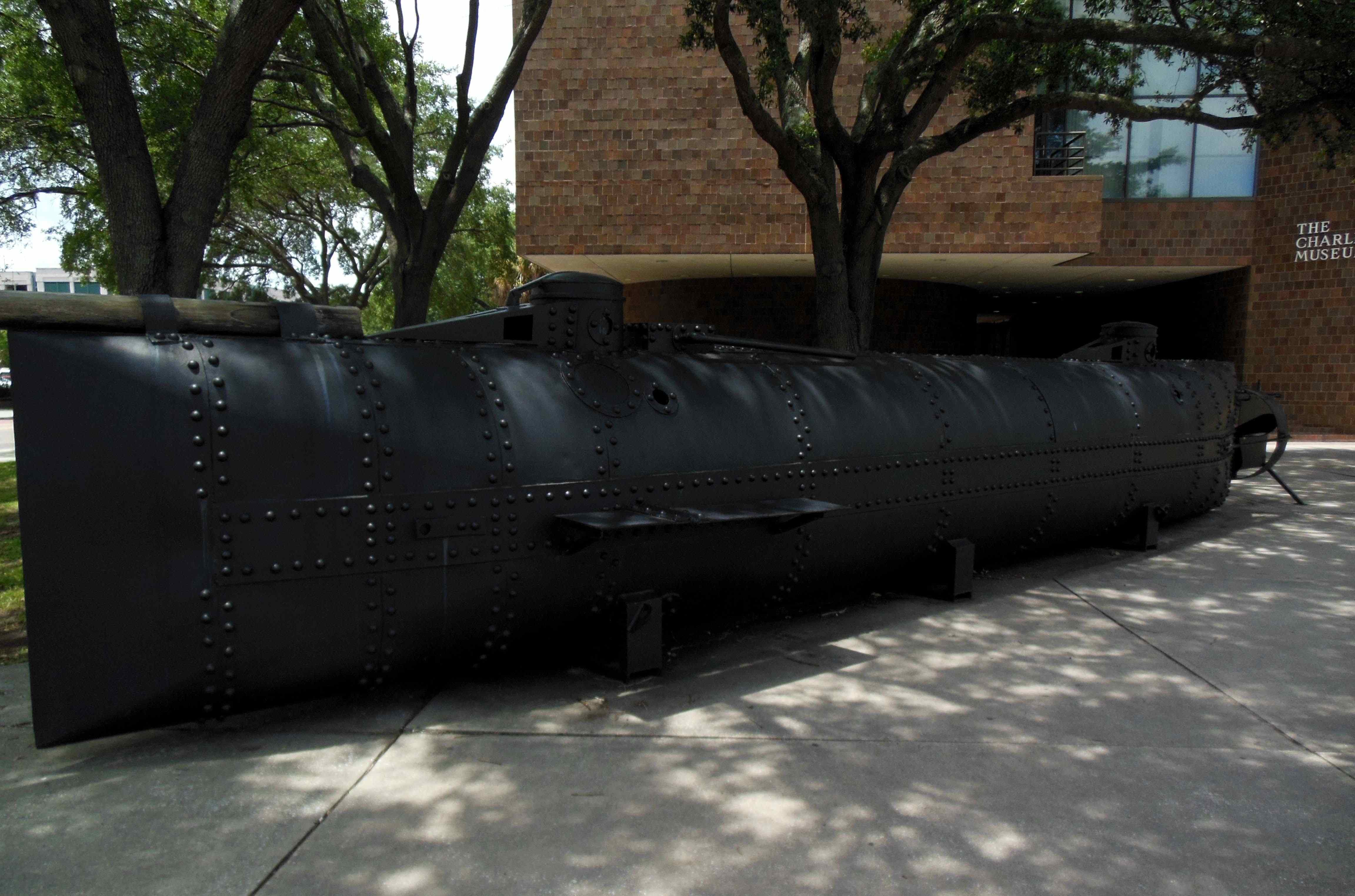 The Civil War submarine the H.L. Hunley was the first submarine to sink a naval ship. Its replica is here.