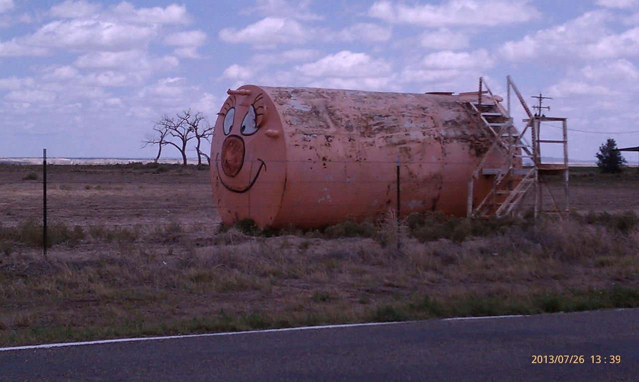 Like a short, but giant caterpillar… Date: August 2, 2013Author: Museum Curator Category: Art Tags: big art, farm art, funny, painted tank, smile, water tank Post navigation ← Beware the tusks… Turn here for Qingxit… → 34.68279 -106.06118 Across the road is some water tank art. Where is this? Art in a field by itself. Share this: Share on X (Opens in new window) X Share on Facebook (Opens in new window) Facebook Share on Pinterest (Opens in new window) Pinterest Share on Tumblr (Opens in new window) Tumblr Email a link to a friend (Opens in new window) Email Like Loading... Related