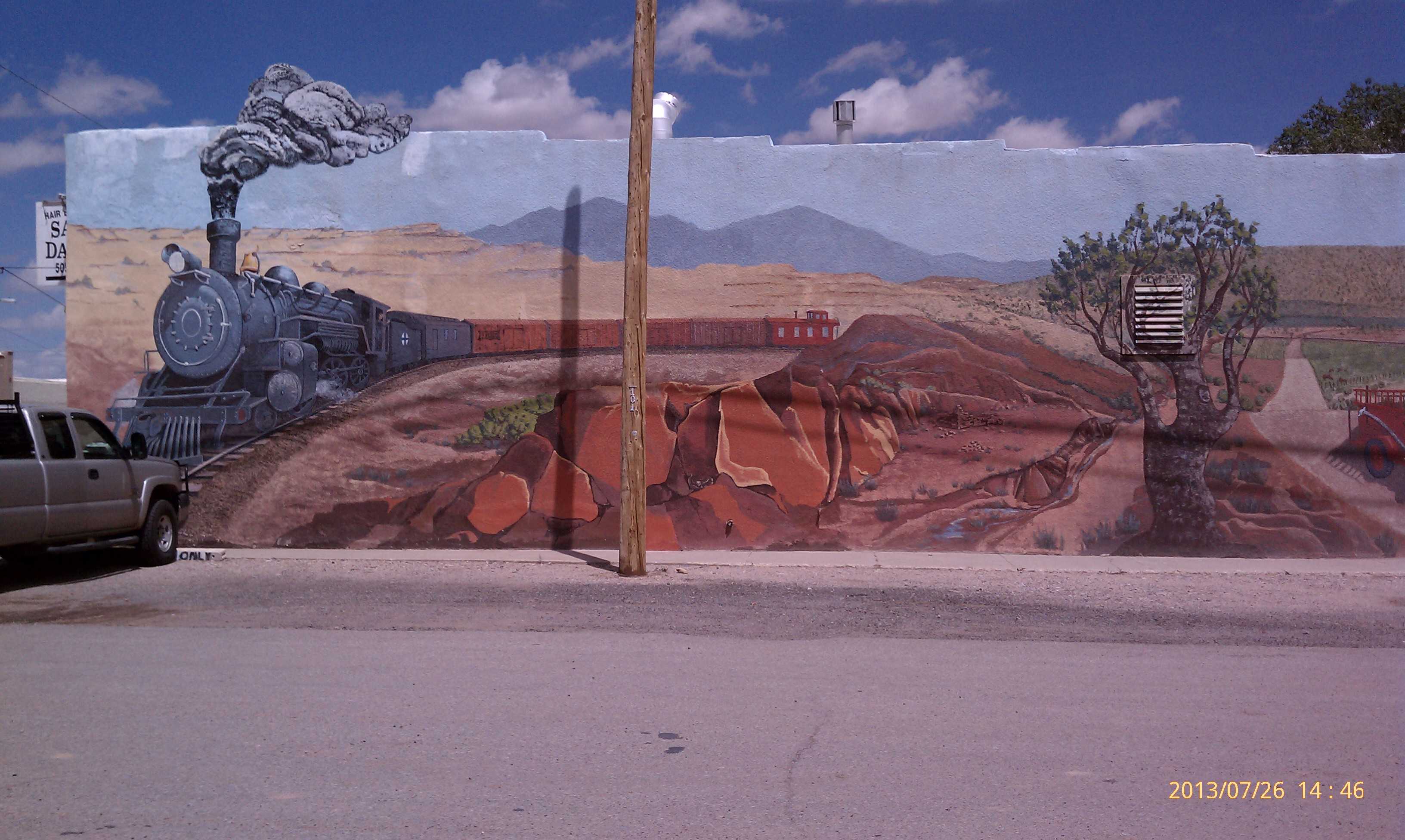 With the caboose a ways behind… Date: August 14, 2013Author: Museum Curator Category: Art Tags: history, landscape, murals, steam engine, train Post navigation ← The night’s lights… Art can be simple… → 34.520138 -106.24179 Mural of a steam engine train. Where is this? The train rounds the bend. Share this: Click to share on X (Opens in new window) X Click to share on Facebook (Opens in new window) Facebook Click to share on Pinterest (Opens in new window) Pinterest Click to share on Tumblr (Opens in new window) Tumblr Click to email a link to a friend (Opens in new window) Email Like Loading... Related