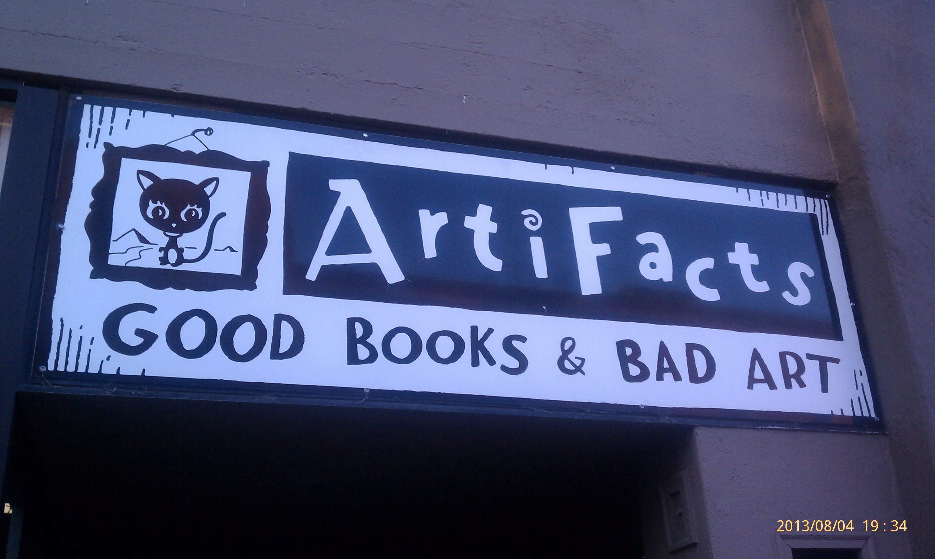 Yeah, some bad art inside… Date: September 4, 2013Author: Museum Curator Category: Retail Tags: bad art, bookstore, signs Post navigation ← Music to a waiting passenger’s ears… A shiny screw… → 45.709652 -121.51281 ArtiFacts is a store of “good books & bad art.” Where is this? Claims good books and bad art. Share this: Click to share on X (Opens in new window) X Click to share on Facebook (Opens in new window) Facebook Click to share on Pinterest (Opens in new window) Pinterest Click to share on Tumblr (Opens in new window) Tumblr Click to email a link to a friend (Opens in new window) Email Like Loading... Related