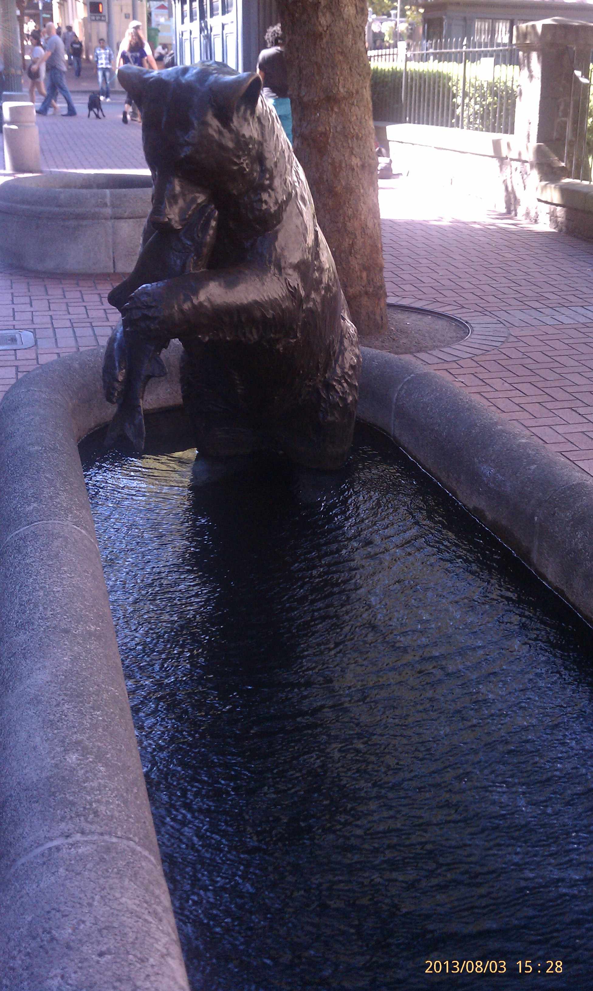 Dining and bathing… Date: September 17, 2013Author: Museum Curator Category: Art Tags: bear, bear fishing, bear in fountain, bronze bear, bronze sculpture Post navigation ← May have began or ended with an oops… Art about art… → 45.51814 -122.67881 Bronze bear sculptures in this fountain pond. Where is this? A fish out of water becomes lunch. Share this: Share on X (Opens in new window) X Share on Facebook (Opens in new window) Facebook Share on Pinterest (Opens in new window) Pinterest Share on Tumblr (Opens in new window) Tumblr Email a link to a friend (Opens in new window) Email Like Loading... Related