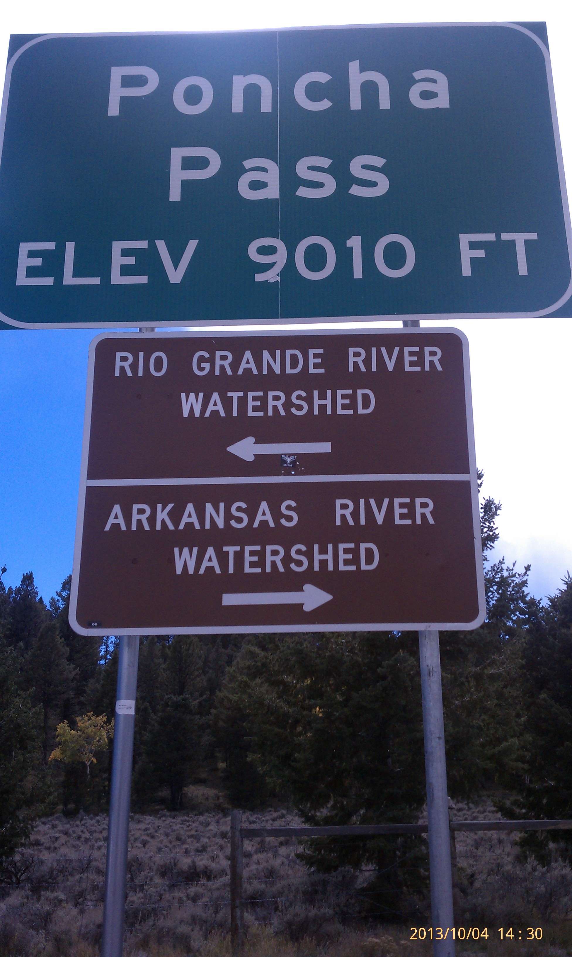 Water goes right or left from here… Date: October 15, 2013Author: Museum Curator Category: Transportation Tags: educational, pass summit, Poncha Pass, roadside interest, summit, water split Post navigation ← See inside the clockworks… An ancient relic welcomes you… → 38.42189 -106.088005 This is the summit of Poncha Pass at an elevation of 9010 feet. Where is this? The summit of Poncha Pass. Share this: Click to share on X (Opens in new window) X Click to share on Facebook (Opens in new window) Facebook Click to share on Pinterest (Opens in new window) Pinterest Click to share on Tumblr (Opens in new window) Tumblr Click to email a link to a friend (Opens in new window) Email Like Loading... Related
