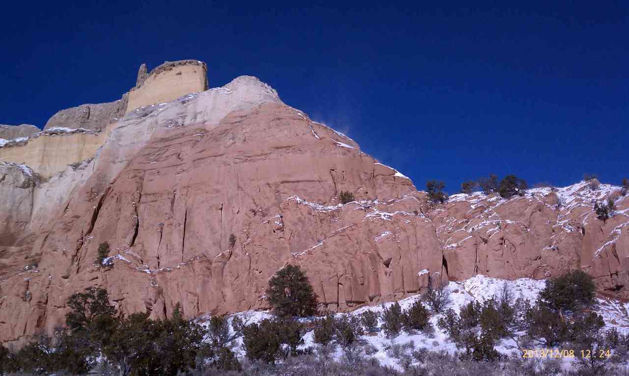 From here you can see snow blowing over the ridge like wisps of smoke or dust.