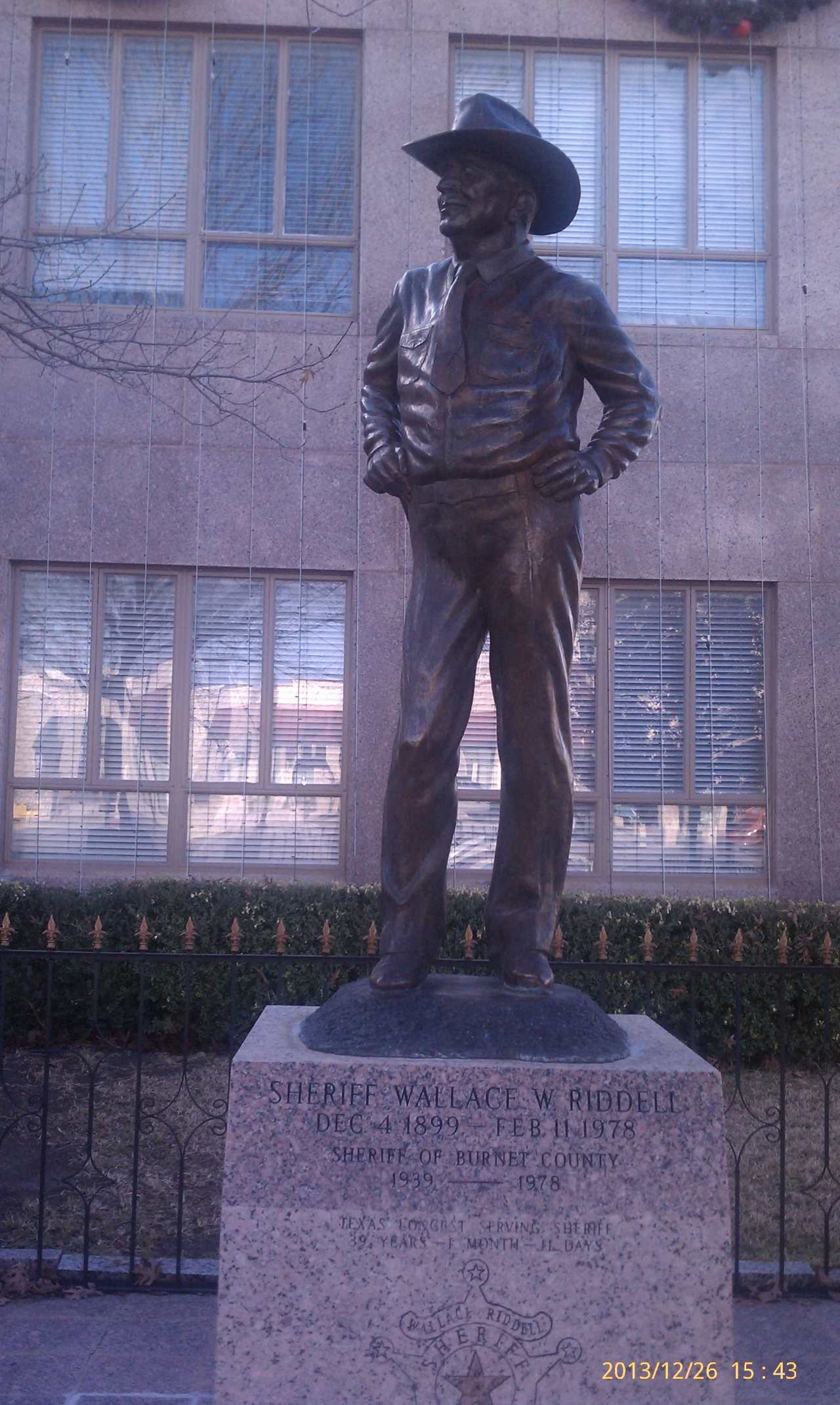 Sculpture of Sheriff Wallace W. Riddell, Texas’ longest serving sheriff.
