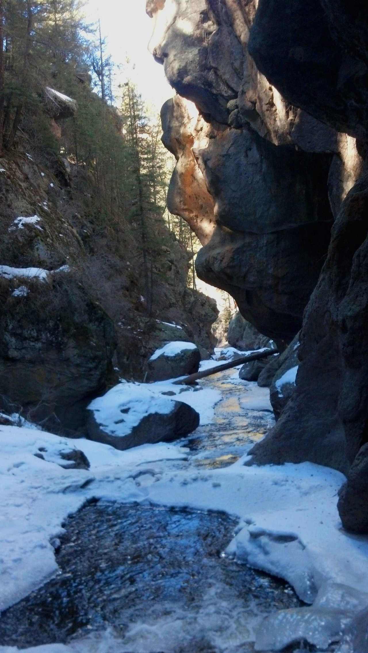 Enjoy a great wintry trek through Las Conchas canyon. Do it in early run off and you can get pretty deep in
