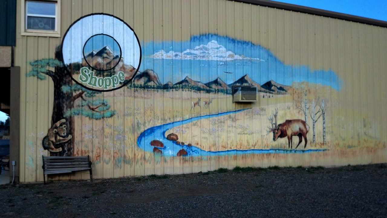 The Made in Colorado Shoppe has a mural that depicts a nice full natured afternoon in a tranquil valley