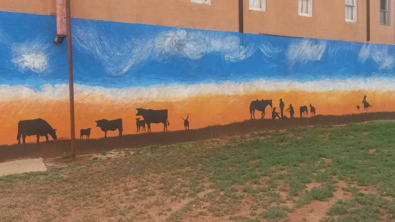 Mural of a Texas range and sky.