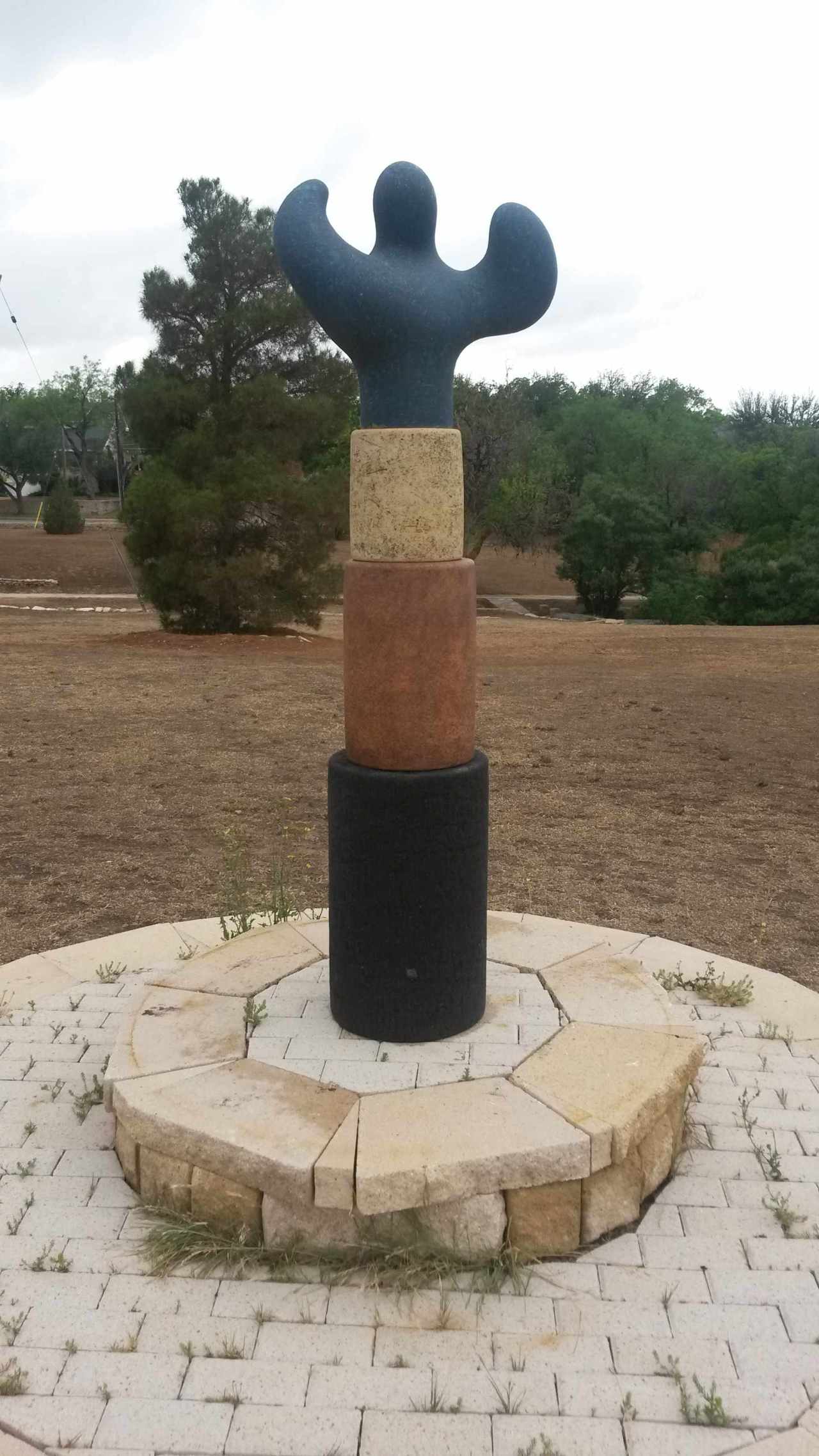 This piece of stoneware and stone is called The Ghost of Hidden Dimensions.