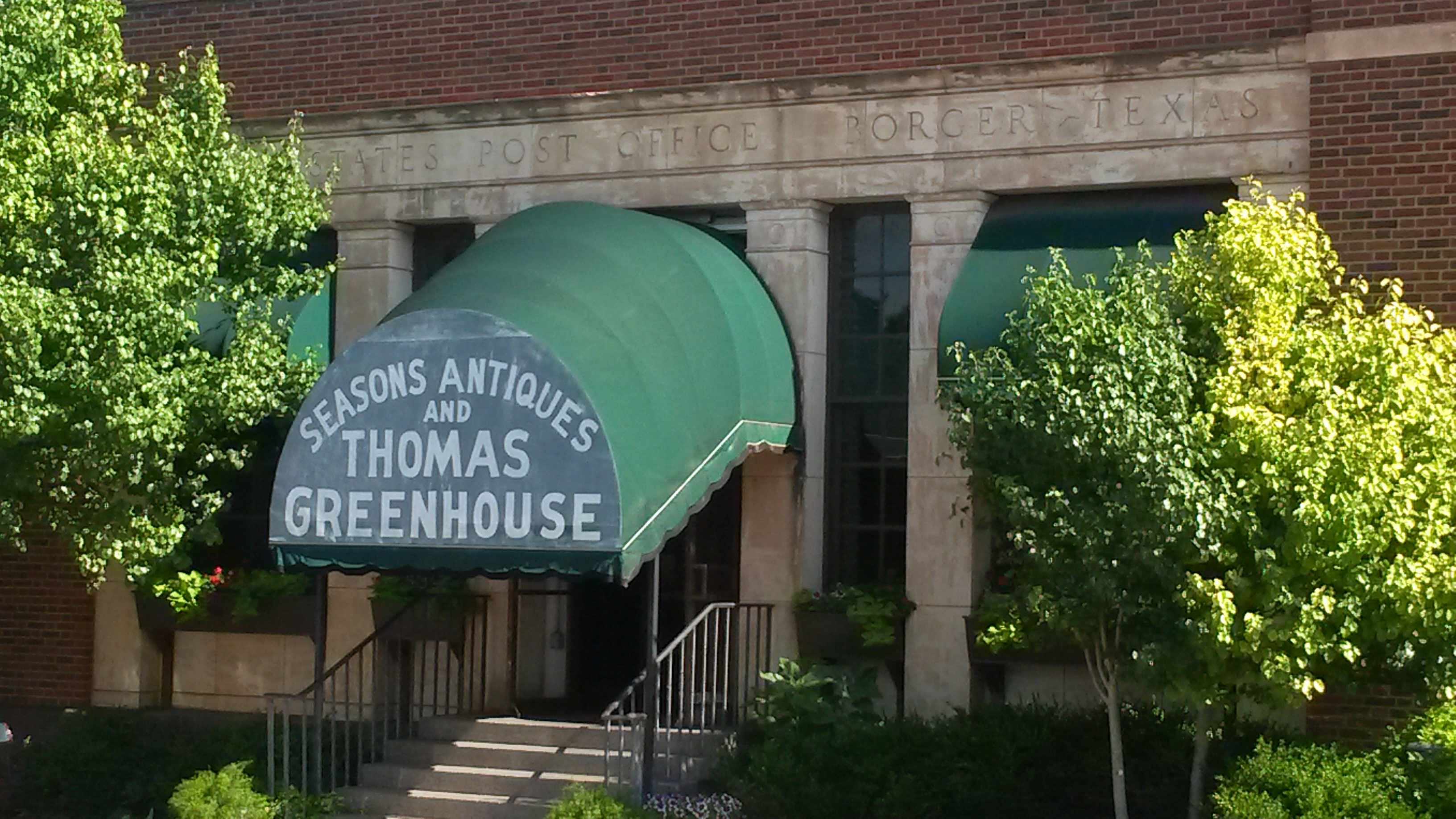 Seasons Antiques and Thomas Greenhouse is in the old post office building.