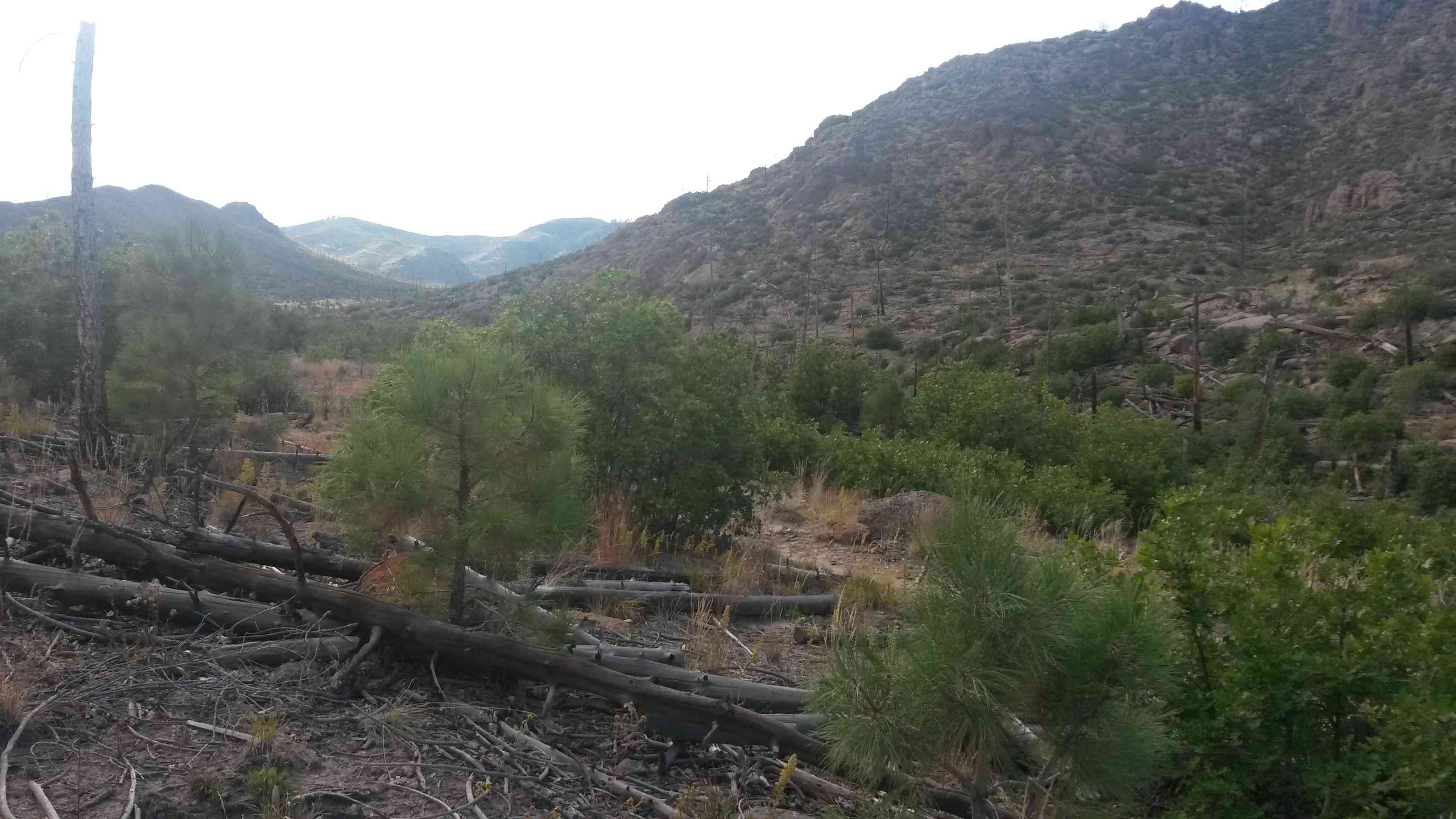 The three pines here were planted right after Cerro Grande burned this area. One is now over six feet tall.