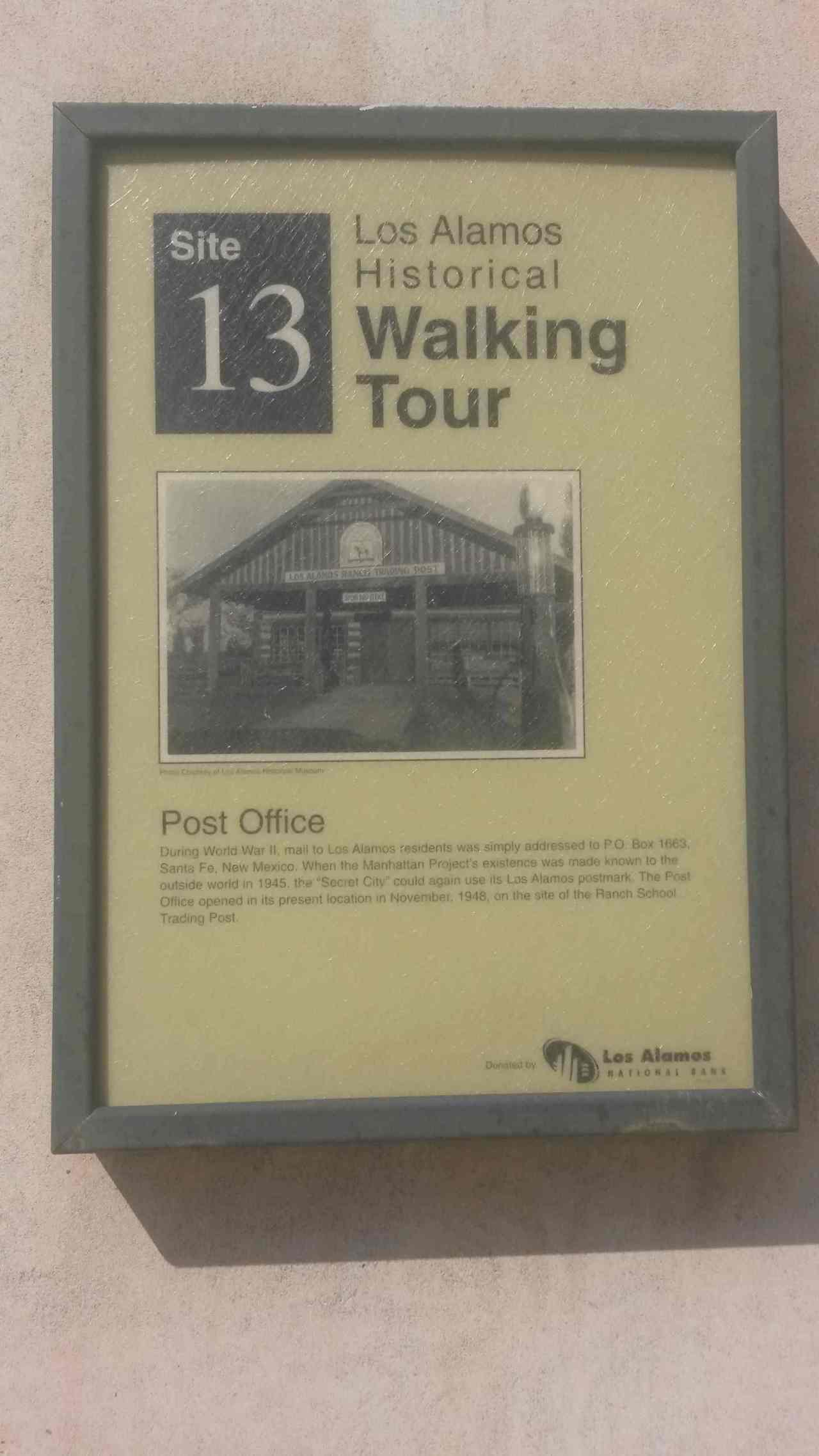 Los Alamos Historic Walking Tour #13, Post Office was once the Ranch School Trading Post site.
