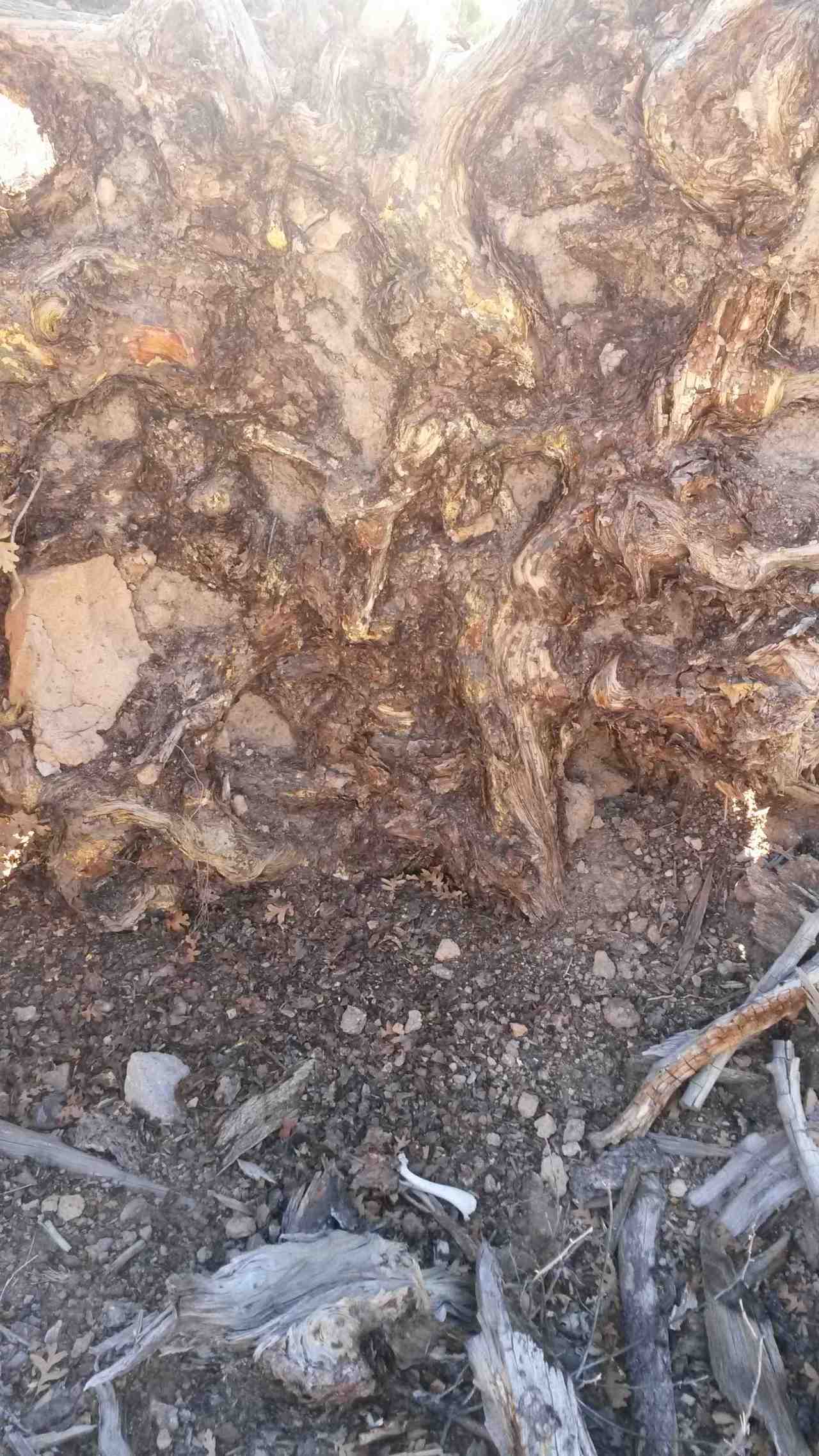 This up-ended tree shows the root system. It looks like an interesting abstract painting.