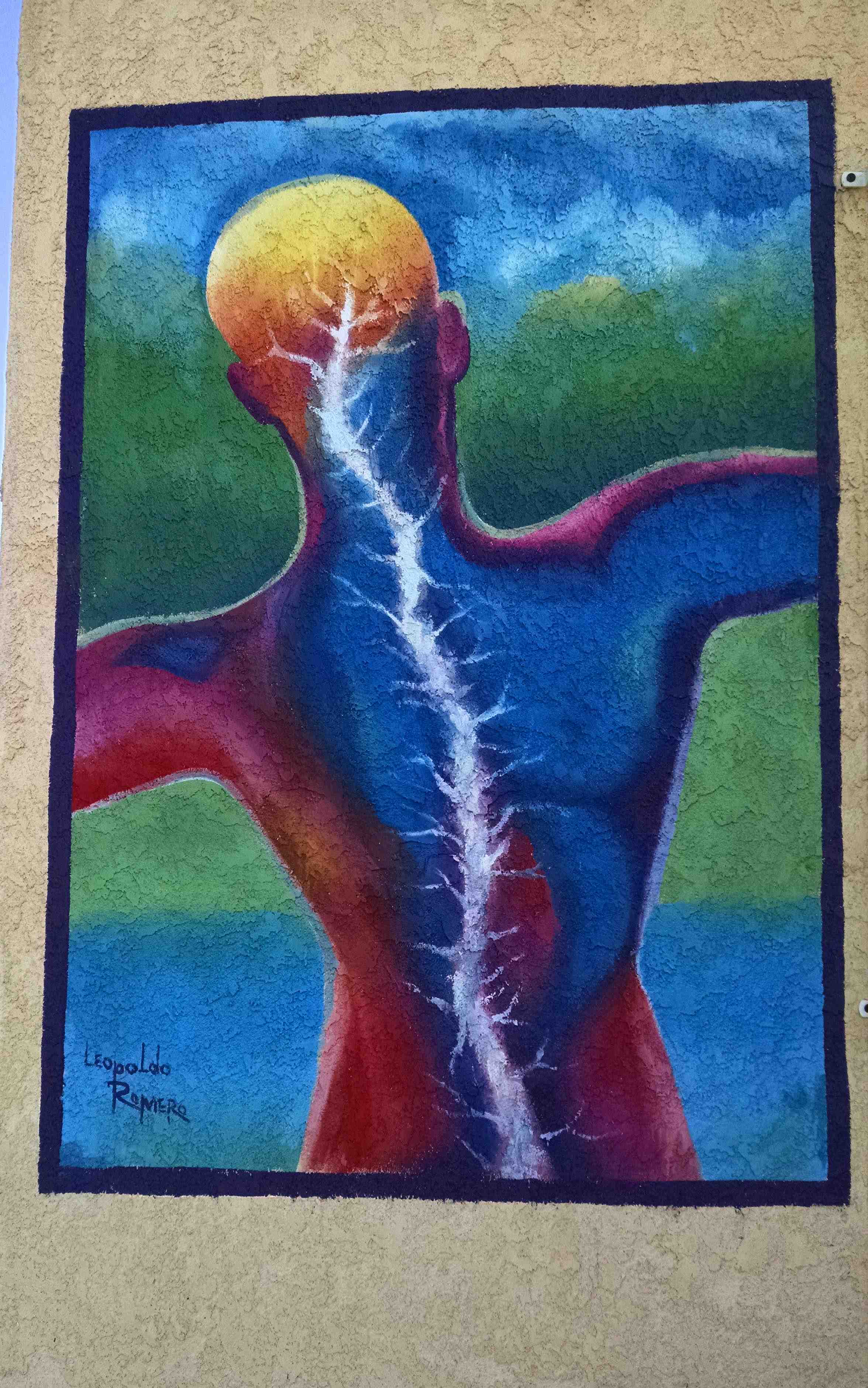 Based on the artwork on the wall of this chiropractors office one can have a saturated sense of spinal relief.
