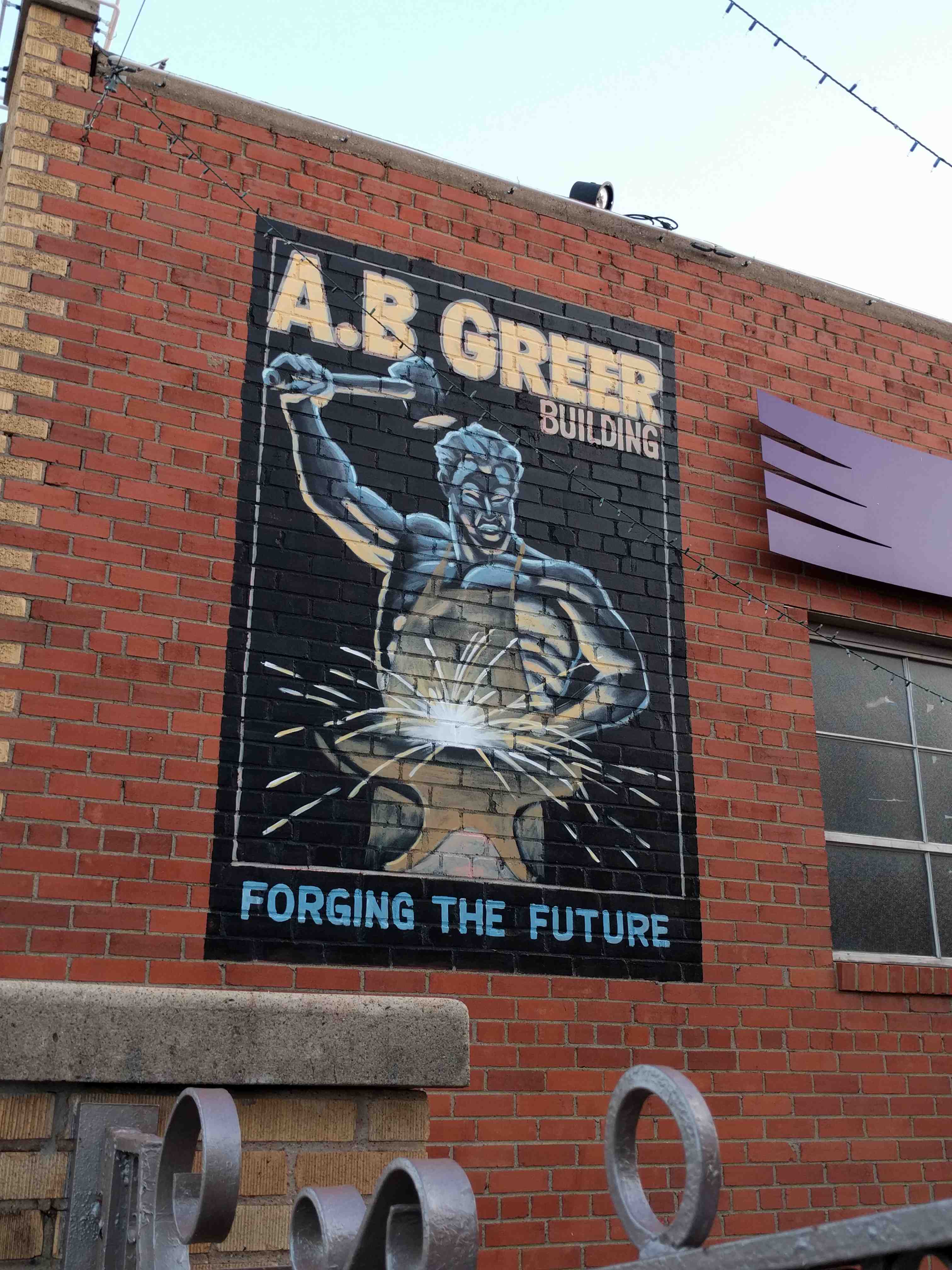 Mural of a blacksmith, forging the future.