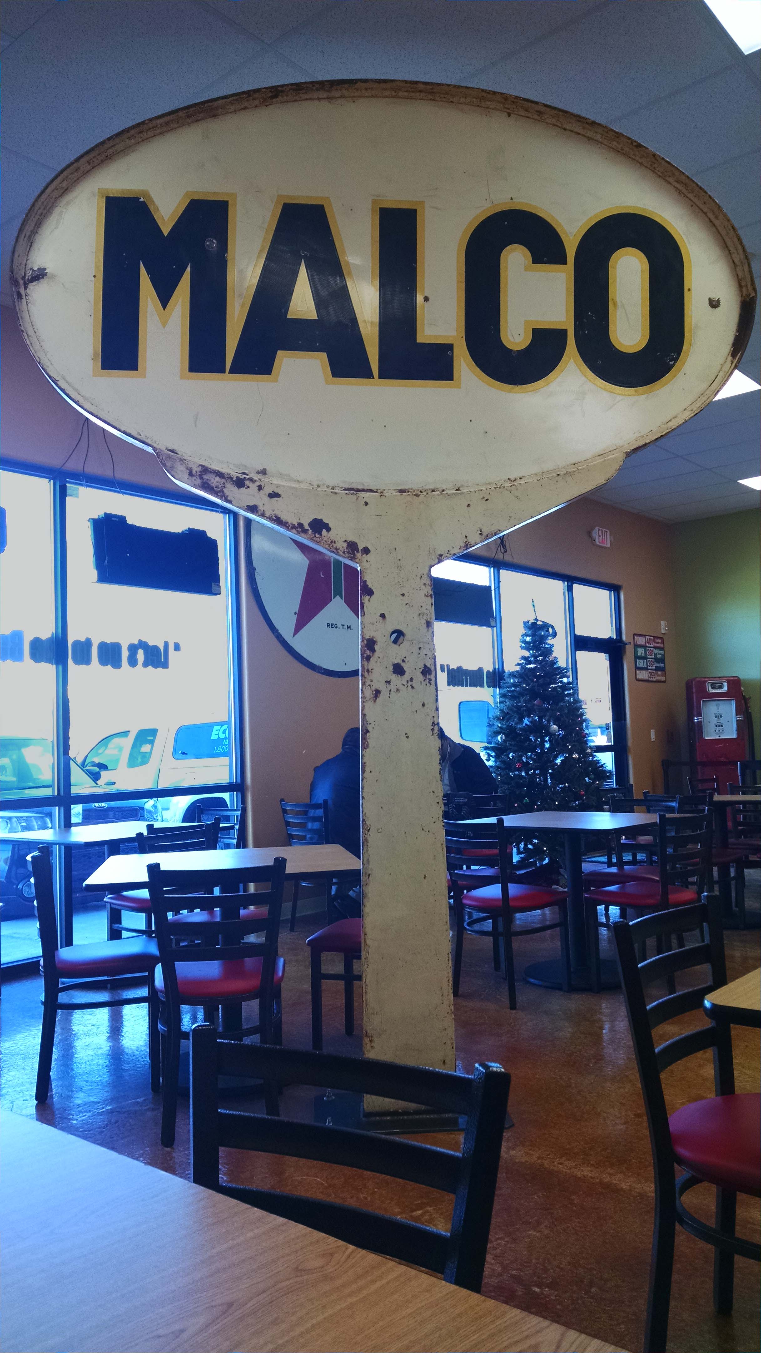 At Burrito Express there is a huge old Malco sign in the middle of the dining area.