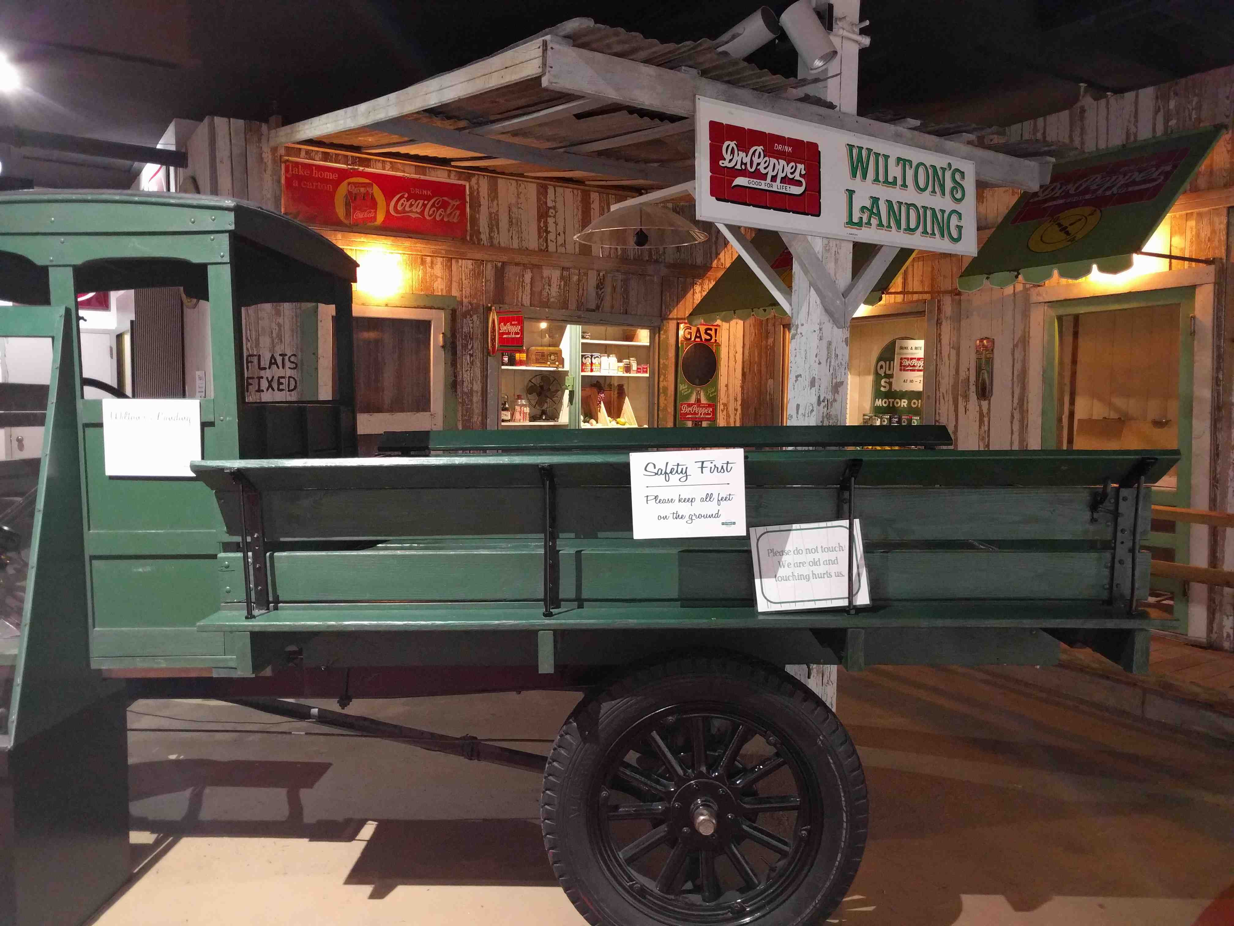 Wilton’s Landing is a display of an old country store and service station.