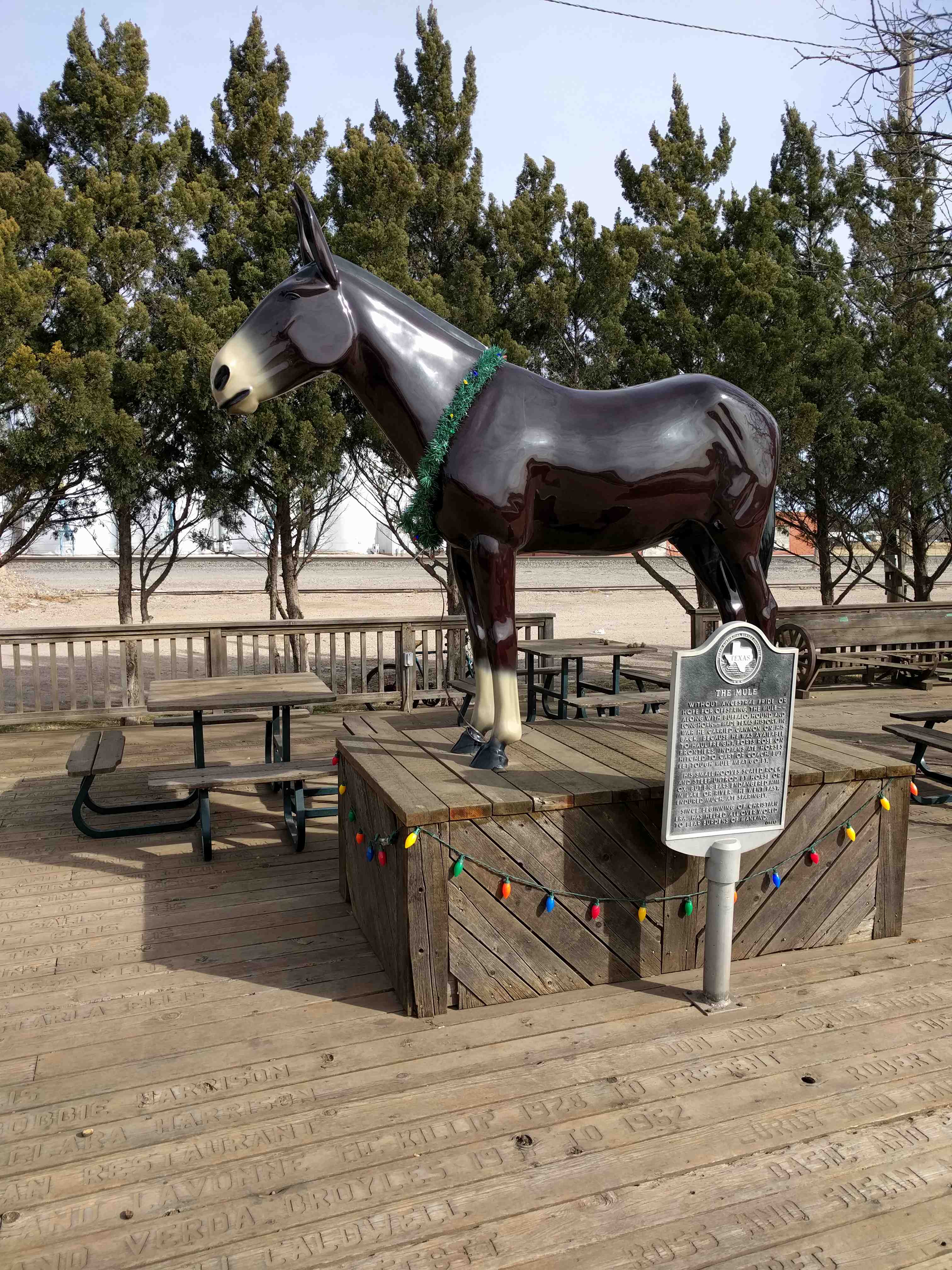 Historic marker and sculpture for the Mule in Muleshoe.