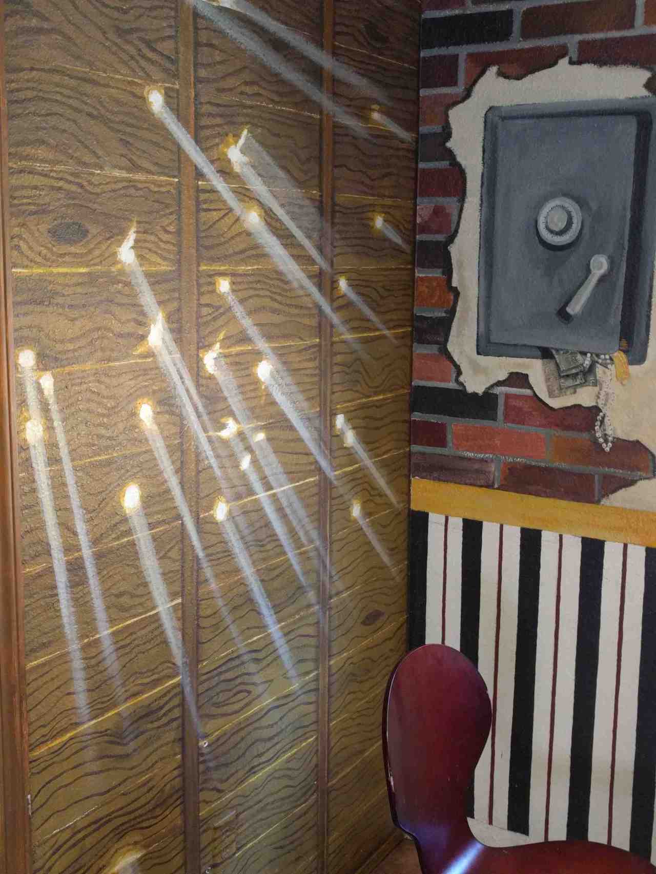 The inside of Papa Franks has cool mural art work on the walls. Great food too.