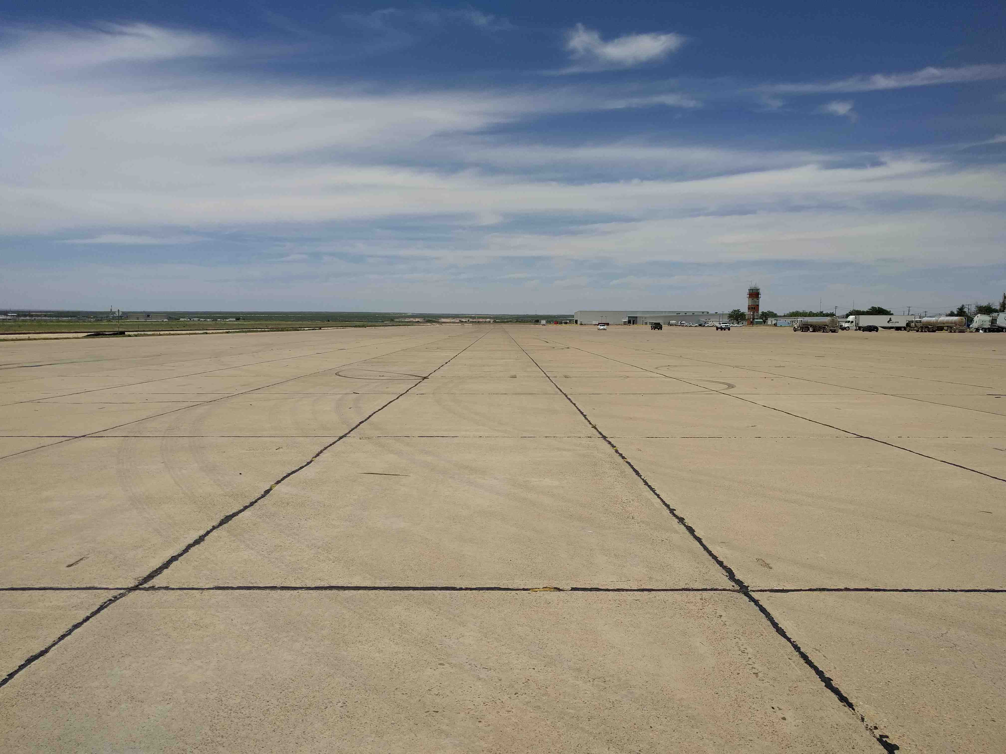 Apron Drive runs between the runway and the old hangars. It’s like driving on a super wide road.
