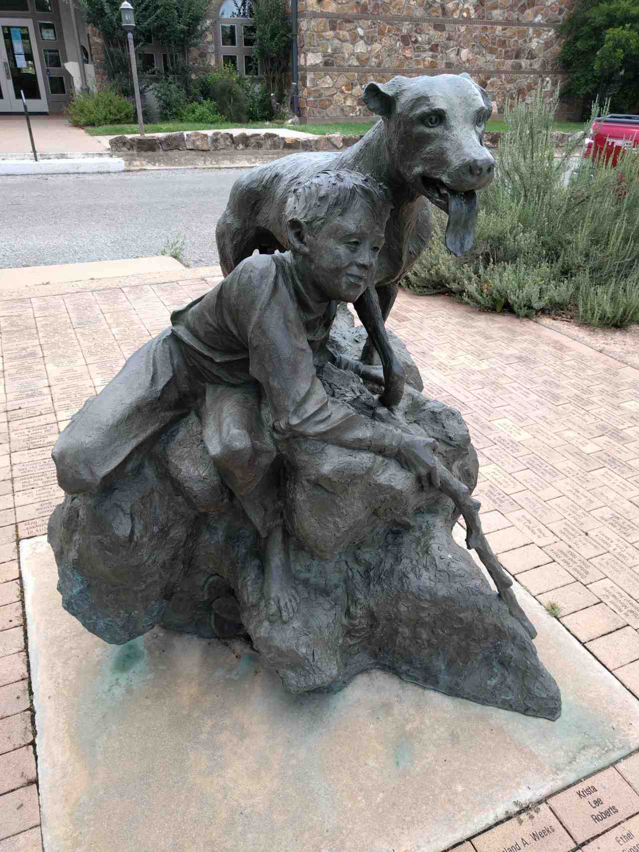 Sculpture of a boy and his dog.