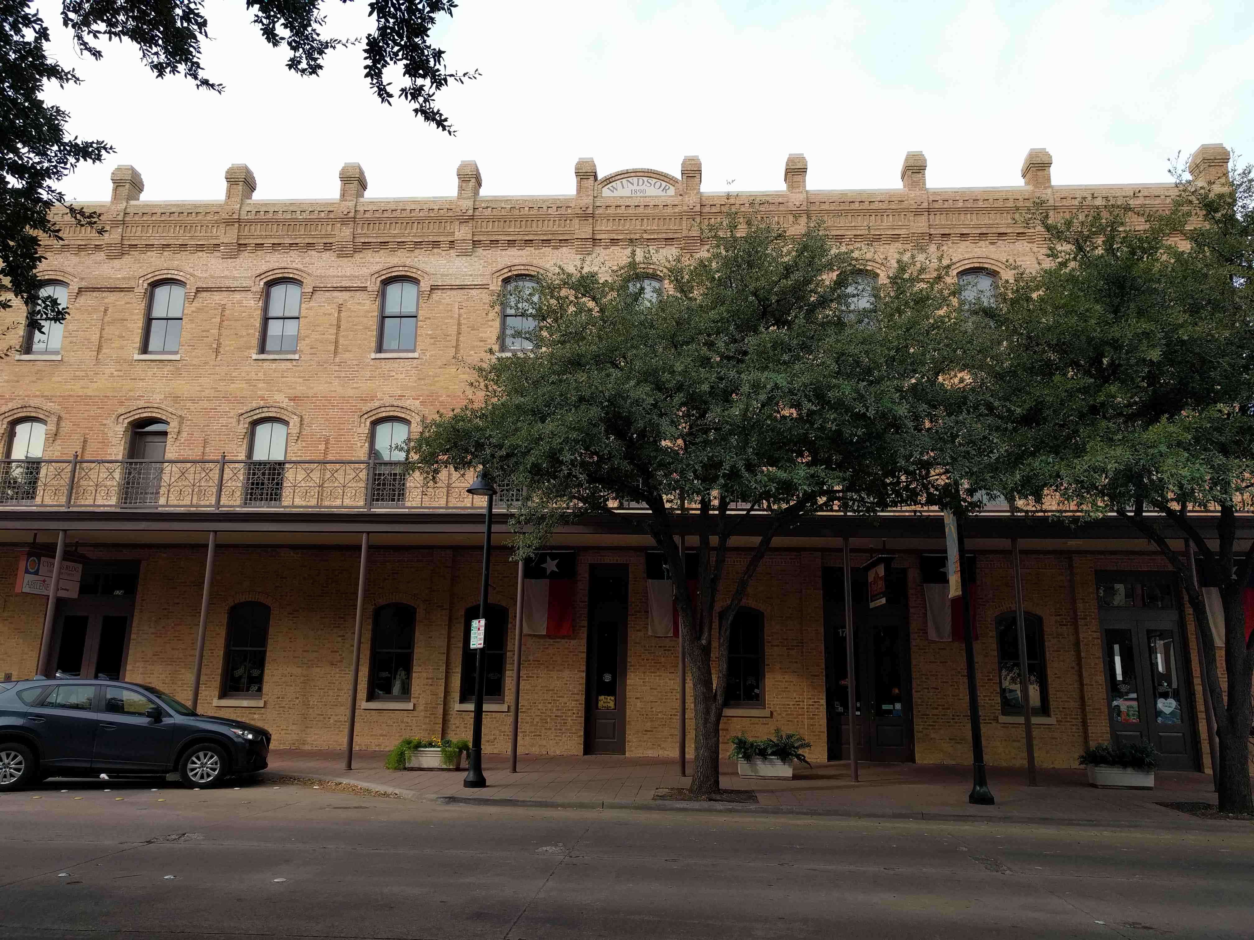 Windsor Hotel building has individual chimneys on roof for individual rooms.
