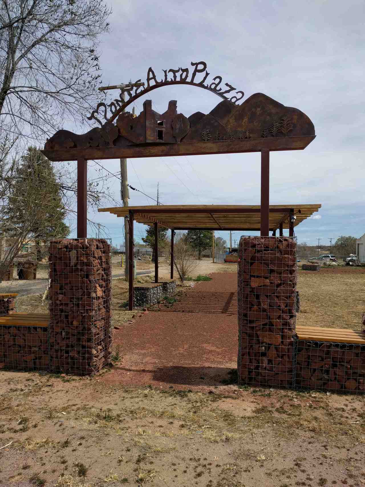 Monte Alto Plaza features benches of stone and wood.