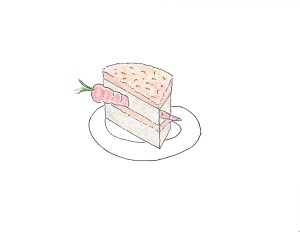 The carrot cake (by S.H.R., pen and ink and pencil on paper) was inspired by Q2427, 42.533657 -83.14595 Holy Bugs Bunny!!! Now this is carrot cake!!!