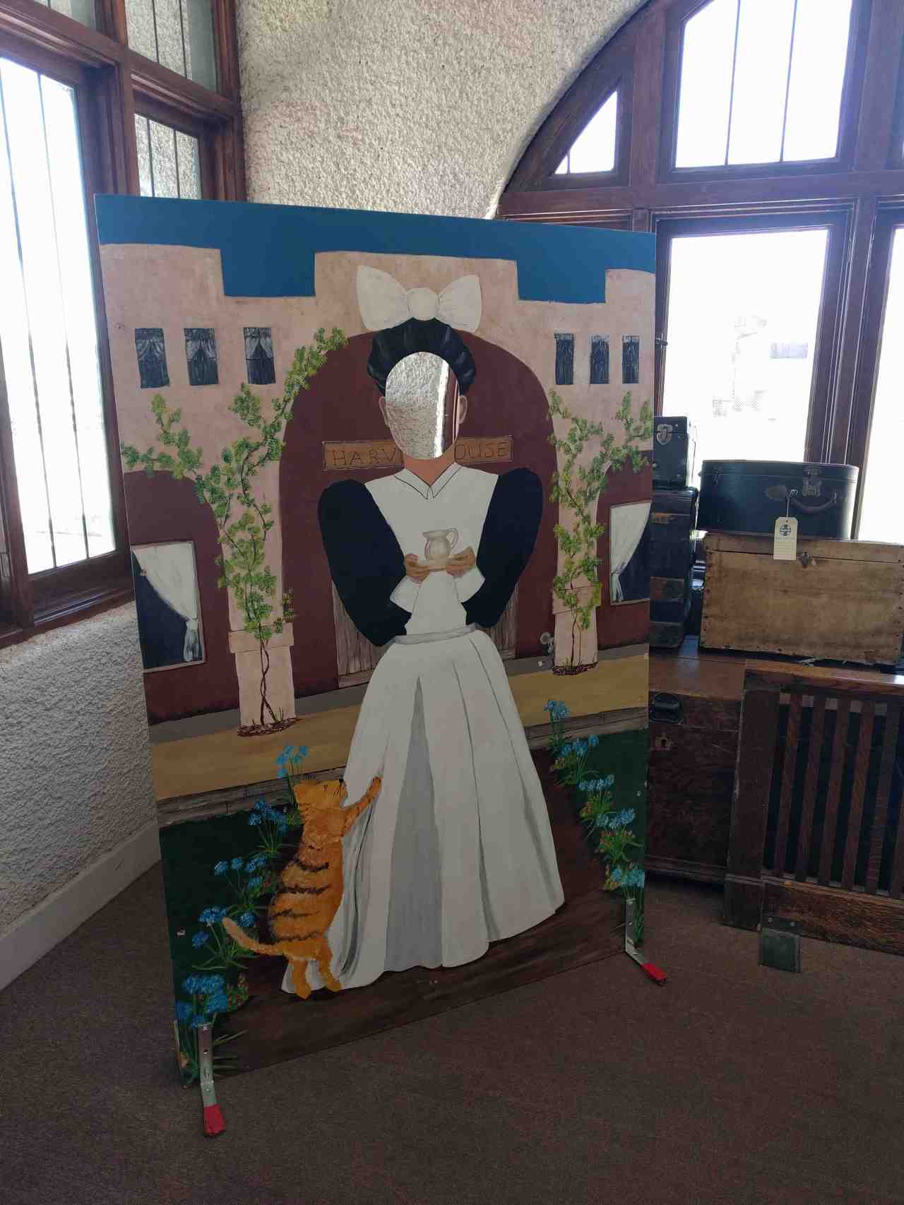 Have your photo taken as a Harvey girl at this mural cutout.