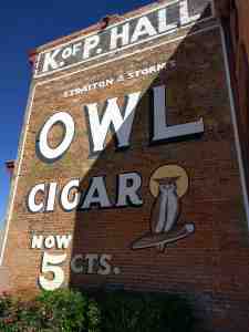 Vintage ad on wall. Owl cigars only five cents.