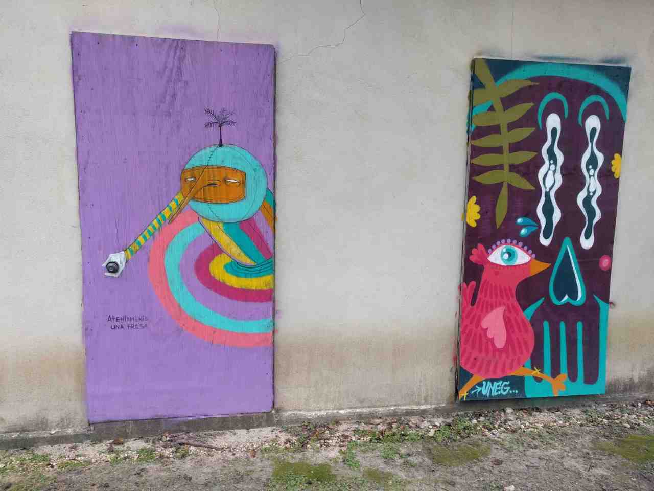 Murals of strange creatures.