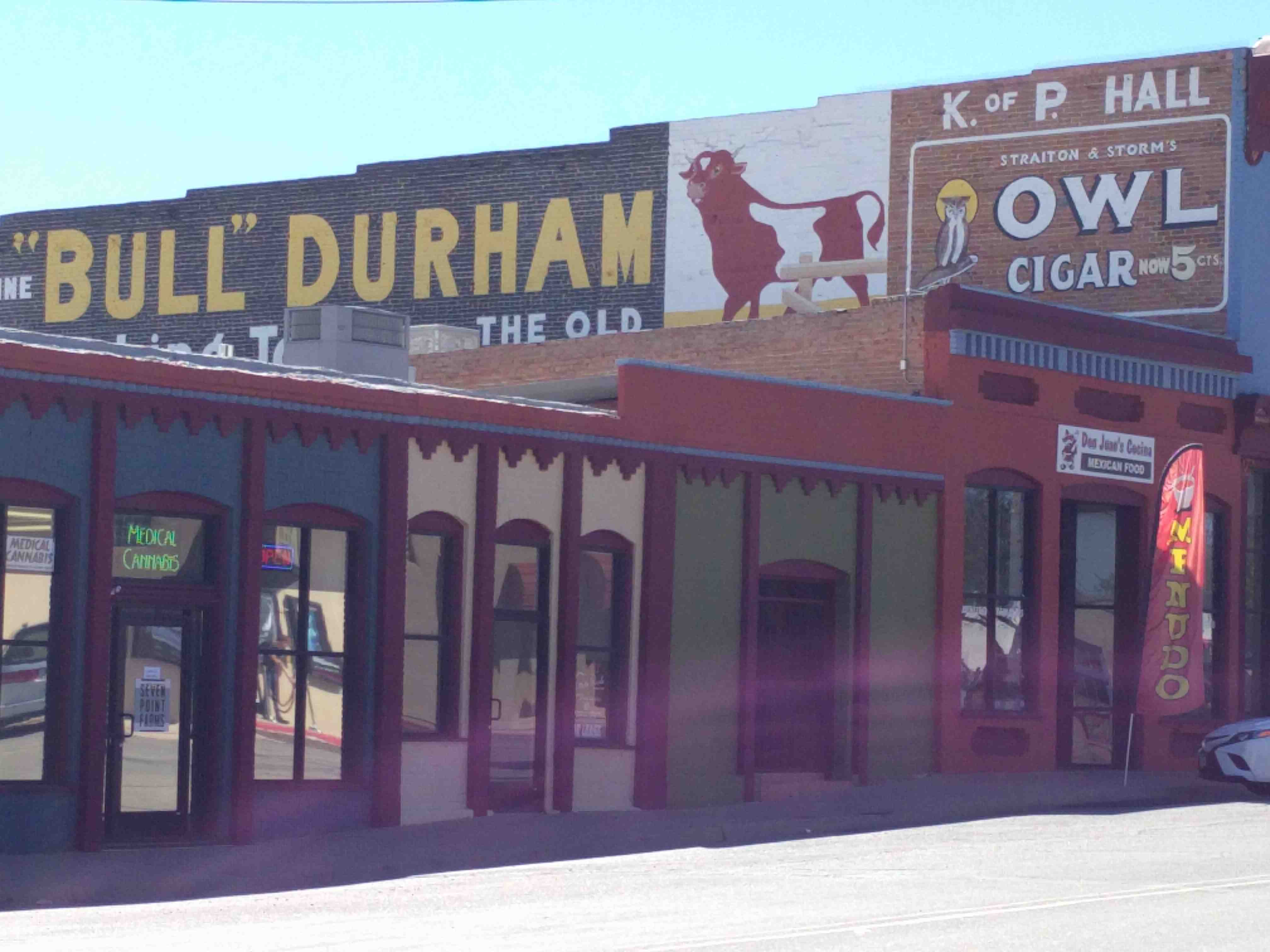 More vintage ads high above on second story east wall.