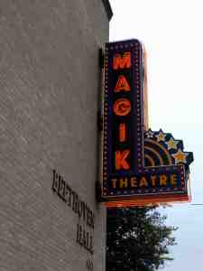 Magik Theatre marquee neon sign.
