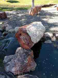Large chunks of petrified wood, some with polished sides.