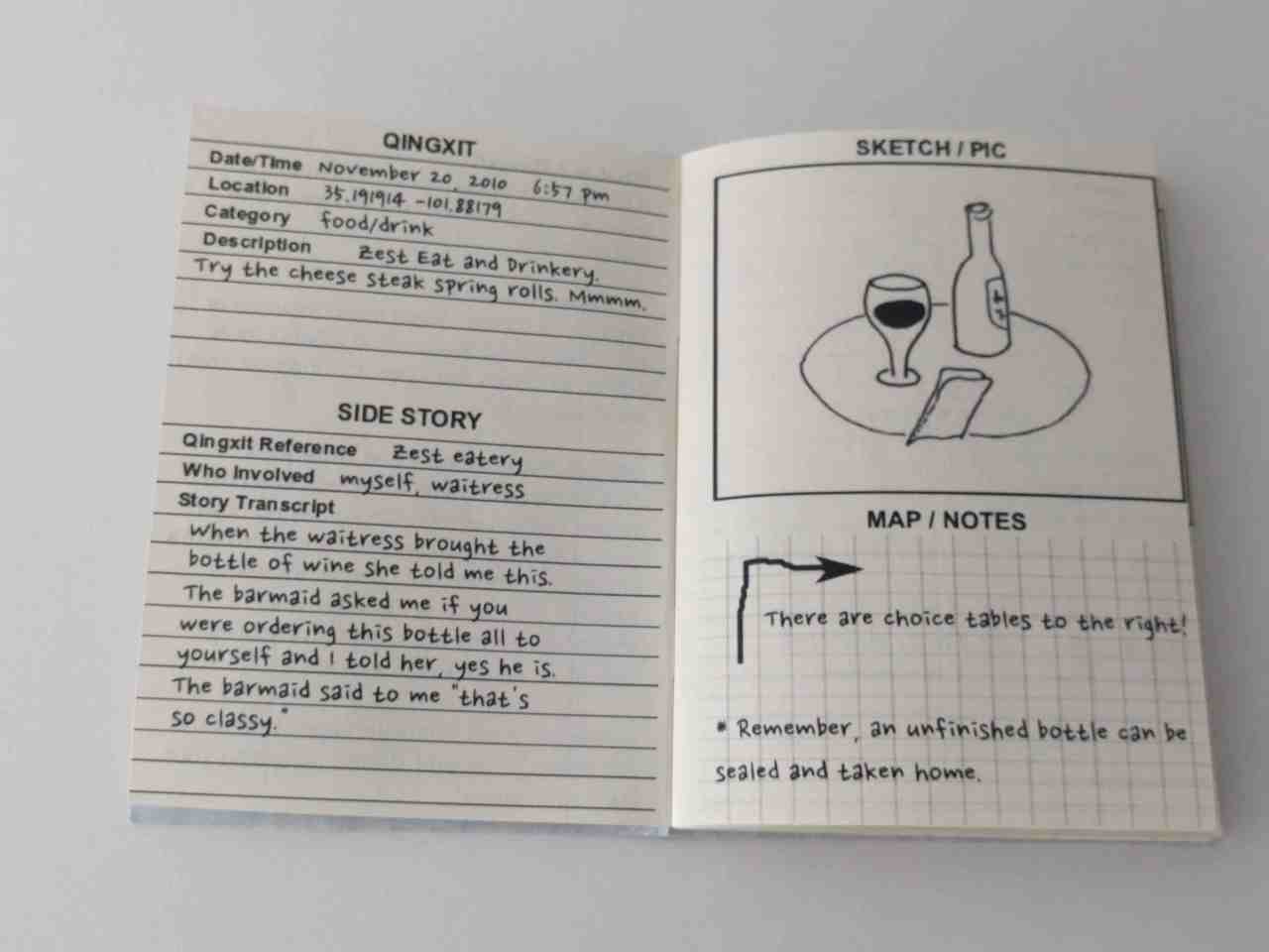 It’s made of real paper and requires the use of a pen and/or pencil. It’s the perfect means for recording more than what’s at that location. With this field notebook you now have the means to make notes, observations, maps, stories, and even pictures.