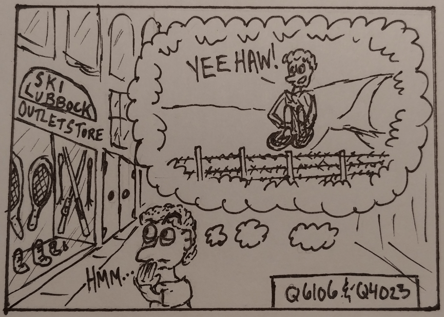 Ski Lubbock, part 2… Date: December 23, 2019Author: Museum Curator Category: Art Tags: art, backpocket, barb wire, barb wire fence, field notebook, geotag art, Lubbock, notebook, resort, sketch, sketchbook, ski, ski resort, sled, snow, snow drift, snowshoe, snowshoes, winter, winter is coming Post navigation ← Ski Lubbock… Ski Lubbock, part 3… → Z Man Slims responds with his own inspiration of Ski Lubbock. All kinds of winter fun at the Ski Lubbock resort. The winter fun continues. Share this: Click to share on X (Opens in new window) X Click to share on Facebook (Opens in new window) Facebook Click to share on Pinterest (Opens in new window) Pinterest Click to share on Tumblr (Opens in new window) Tumblr Click to email a link to a friend (Opens in new window) Email Like Loading... Related