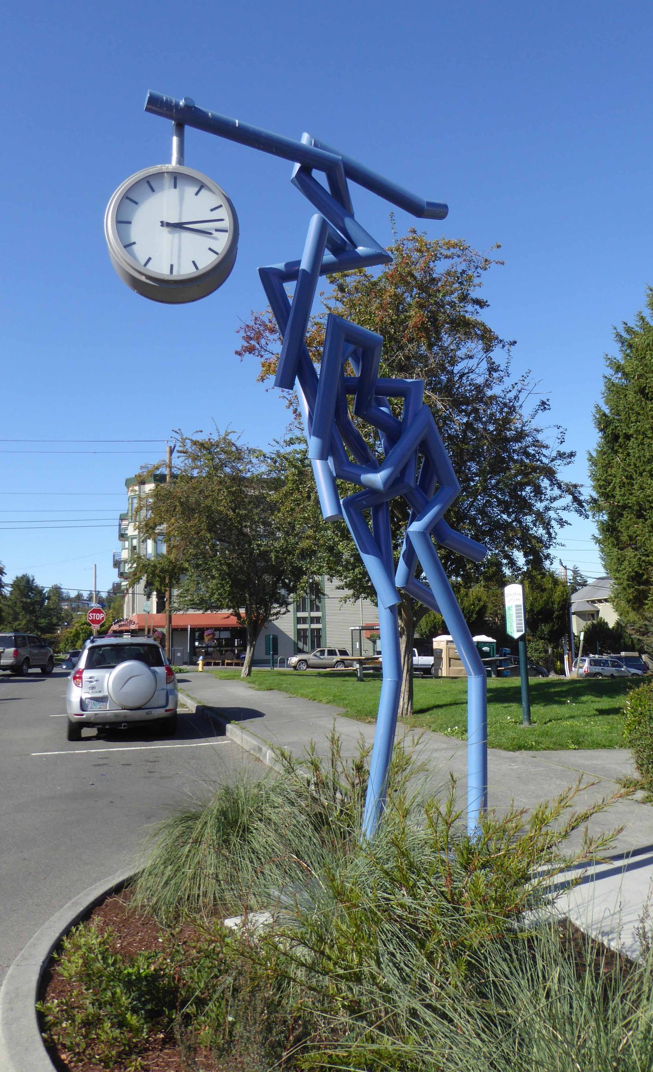 A art piece telling the time here is called Great Blue. Aesthetically more pleasing than just a normal pole.