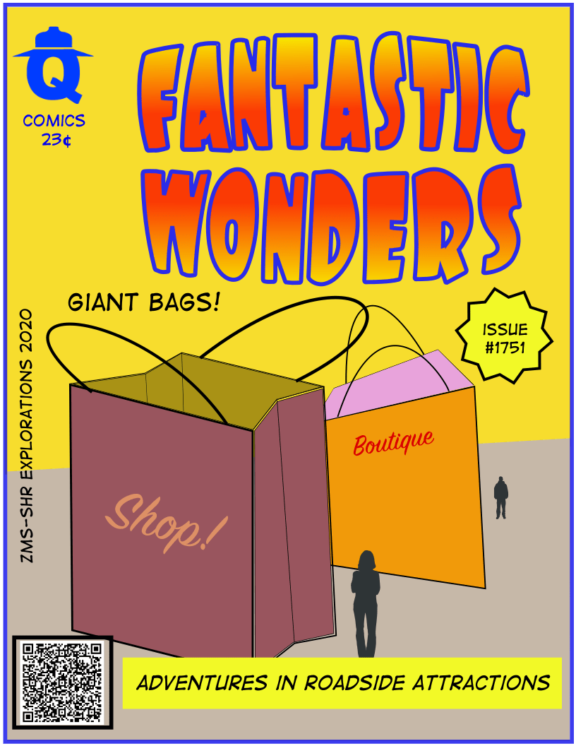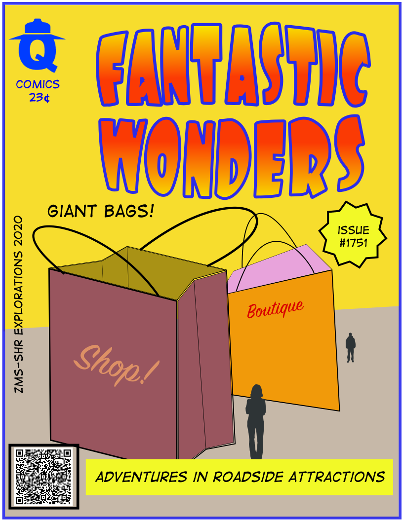 These giant shopping bags mark the location of a small shopping plaza.