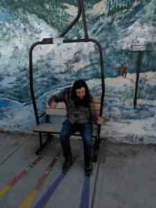 Never been on a chairlift? try it here. Be sure to put your feet on the painted skis on ground for full effect.