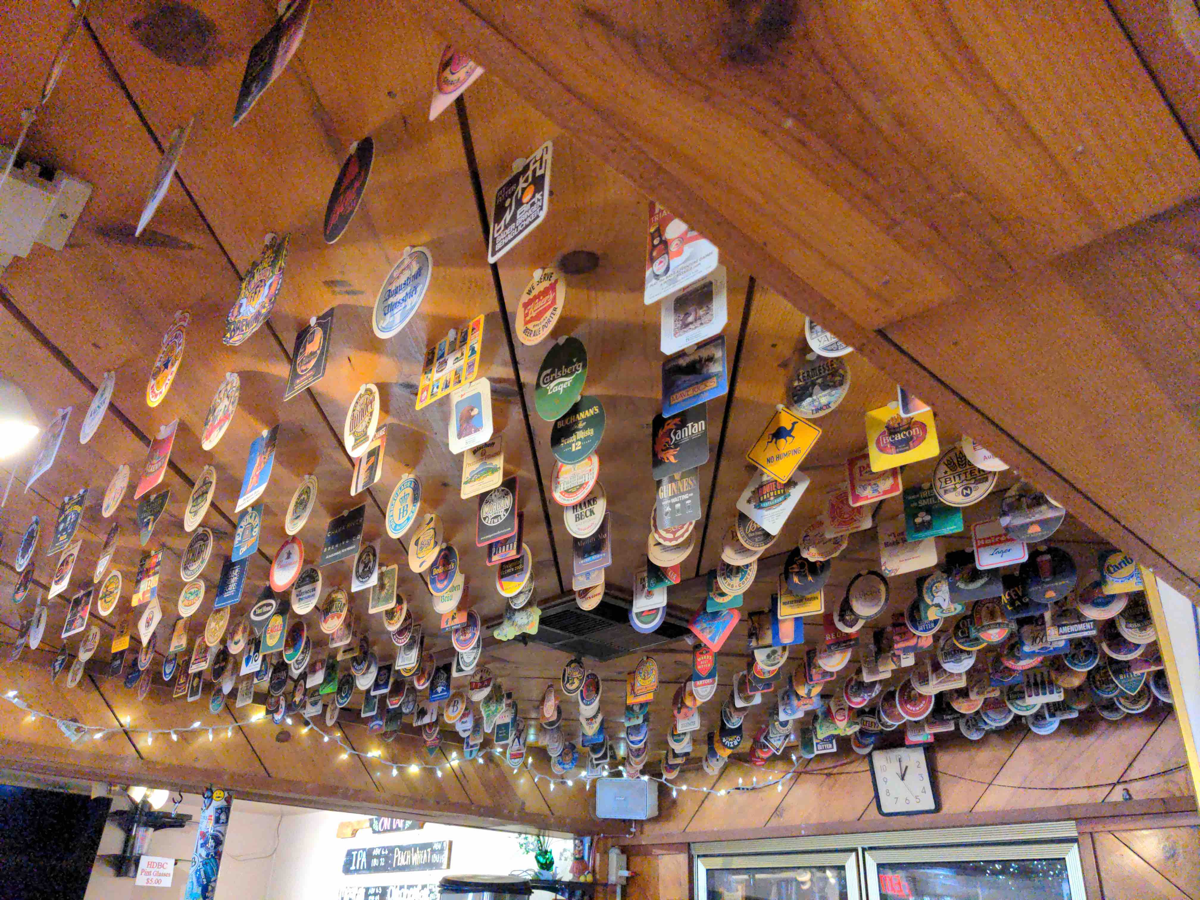 Look up! Coasters make ceiling art… Date: September 28, 2022Author: Museum Curator Category: Art Tags: art, bar, bar coasters, beer, beer coasters, beers, brew pub, ceiling, ceiling art, ceiling collection, coaster collection, coasters, collection, drink coasters, geotag art, hanging coasters, hanging collection, microbrew pub, microbrewery, pub Post navigation ← Let’s go to the movies… Graffiti is art… → 32.309677 -106.793495 High Desert Brewing Co. has a ceiling of hanging coasters. Show me where it is! A collection of coasters makes an art object on the ceiling. Share this: Click to share on X (Opens in new window) X Click to share on Facebook (Opens in new window) Facebook Click to share on Pinterest (Opens in new window) Pinterest Click to share on Tumblr (Opens in new window) Tumblr Click to email a link to a friend (Opens in new window) Email Like Loading... Related